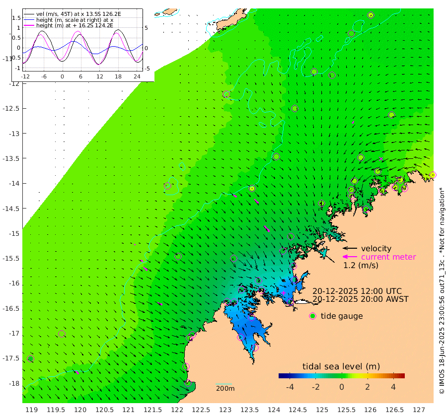 31cm/s 125T +10cm/s rms + 1cm/s 1T. NWSBRW 205m 32cm/s 140T +11cm/s rms + 6cm/s -110T. NWSROW 199m 67cm/s 141T +5cm/s rms + 2cm/s 65T. CAM050 58m 52cm/s 138T +12cm/s rms + 5cm/s 92T. CAM100 99m 10cm/s 123T +7cm/s rms + 1cm/s -85T. KIM400 396m 22cm/s 125T +9cm/s rms + 5cm/s -119T. KIM200 208m 41cm/s 131T +11cm/s rms + 5cm/s -147T. KIM100 99m 47cm/s 115T +8cm/s rms + 3cm/s -103T. KIM050 59m 23cm/s -142T +4cm/s rms + 2cm/s 23T. TIMORS88 91m -28cm Imperieuse Reef 59cm Mermaid Reef 32cm Broome 44cm Cape Baskerville -18cm Red Bluff 38cm Cape Boileau 56cm Scott Reef (WA) 47cm Ashmore Reef -97cm Karrakatta Bay -118cm Sunday Island -237cm Valentine Island -257cm Derby -222cm Port Usborne -77cm Bedford Islands -81cm Yampi Sound (Koolan Island) -76cm Macleay Island -3cm Adele Island 93cm Browse Island -148cm Shale Island -130cm Lizard Island -128cm Hall Point -33cm Degerando Island 0cm White Island 57cm Skua No. 4 Well 32cm Jabiru 46cm Maret Island 53cm Baudin Island 51cm Cape Voltaire (Krait Bay) 31cm Dillon Shoal 79cm Laminaria 31cm Port Warrender 72cm Troughton Island 65cm Cassini Island 66cm West Holothuria Reef Offshore 61cm Jar Island 33cm Lynher Bank 60cm Heywood Shoal 51cm Pee Shoal 62cm Van Cloon Shoal 90cm Carronade Island 96cm Guy Point 95cm Napier Broome Bay 127cm Lesueur Island