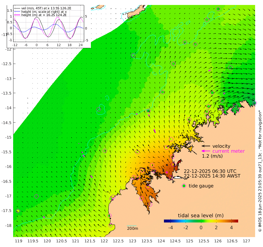 22cm/s -49T +10cm/s rms + 1cm/s 1T. NWSBRW 205m 32cm/s -35T +11cm/s rms + 6cm/s -110T. NWSROW 199m 54cm/s -25T +5cm/s rms + 2cm/s 65T. CAM050 58m 40cm/s -24T +12cm/s rms + 5cm/s 92T. CAM100 99m 8cm/s -33T +7cm/s rms + 1cm/s -85T. KIM400 396m 19cm/s -37T +9cm/s rms + 5cm/s -119T. KIM200 208m 36cm/s -34T +11cm/s rms + 5cm/s -147T. KIM100 99m 39cm/s -38T +8cm/s rms + 3cm/s -103T. KIM050 59m 38cm/s 58T +4cm/s rms + 2cm/s 23T. TIMORS88 91m 84cm Imperieuse Reef 19cm Mermaid Reef 86cm Broome 52cm Cape Baskerville 131cm Red Bluff 43cm Cape Boileau 15cm Scott Reef (WA) 42cm Ashmore Reef 199cm Karrakatta Bay 213cm Sunday Island 278cm Valentine Island 264cm Derby 267cm Port Usborne 188cm Bedford Islands 211cm Yampi Sound (Koolan Island) 209cm Macleay Island 114cm Adele Island -41cm Browse Island 295cm Shale Island 275cm Lizard Island 261cm Hall Point 146cm Degerando Island 115cm White Island 32cm Skua No. 4 Well 43cm Jabiru 66cm Maret Island 53cm Baudin Island 50cm Cape Voltaire (Krait Bay) 43cm Dillon Shoal 17cm Laminaria 71cm Port Warrender 18cm Troughton Island 41cm Cassini Island 26cm West Holothuria Reef Offshore 19cm Jar Island 55cm Lynher Bank 44cm Heywood Shoal 37cm Pee Shoal 6cm Van Cloon Shoal -26cm Carronade Island -28cm Guy Point -32cm Napier Broome Bay -85cm Lesueur Island