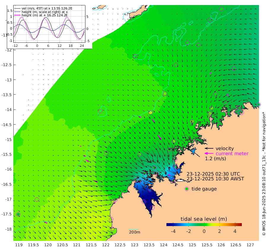 26cm/s 121T +10cm/s rms + 1cm/s 1T. NWSBRW 205m 36cm/s 139T +11cm/s rms + 6cm/s -110T. NWSROW 199m 83cm/s 144T +5cm/s rms + 2cm/s 65T. CAM050 58m 59cm/s 143T +12cm/s rms + 5cm/s 92T. CAM100 99m 13cm/s 121T +7cm/s rms + 1cm/s -85T. KIM400 396m 28cm/s 121T +9cm/s rms + 5cm/s -119T. KIM200 208m 51cm/s 127T +11cm/s rms + 5cm/s -147T. KIM100 99m 54cm/s 110T +8cm/s rms + 3cm/s -103T. KIM050 59m 29cm/s -139T +4cm/s rms + 2cm/s 23T. TIMORS88 91m -67cm Imperieuse Reef 47cm Mermaid Reef 113cm Broome 78cm Cape Baskerville 35cm Red Bluff 63cm Cape Boileau 38cm Scott Reef (WA) 10cm Ashmore Reef -74cm Karrakatta Bay -117cm Sunday Island -372cm Valentine Island -416cm Derby -301cm Port Usborne -21cm Bedford Islands -15cm Yampi Sound (Koolan Island) 10cm Macleay Island 31cm Adele Island 118cm Browse Island -66cm Shale Island -89cm Lizard Island 32cm Hall Point 29cm Degerando Island 49cm White Island 22cm Skua No. 4 Well -3cm Jabiru 69cm Maret Island 60cm Baudin Island 52cm Cape Voltaire (Krait Bay) -34cm Dillon Shoal 17cm Laminaria 16cm Port Warrender -17cm Troughton Island 48cm Cassini Island 15cm West Holothuria Reef Offshore -11cm Jar Island 35cm Lynher Bank 52cm Heywood Shoal -15cm Pee Shoal -43cm Van Cloon Shoal -19cm Carronade Island -19cm Guy Point -25cm Napier Broome Bay -77cm Lesueur Island