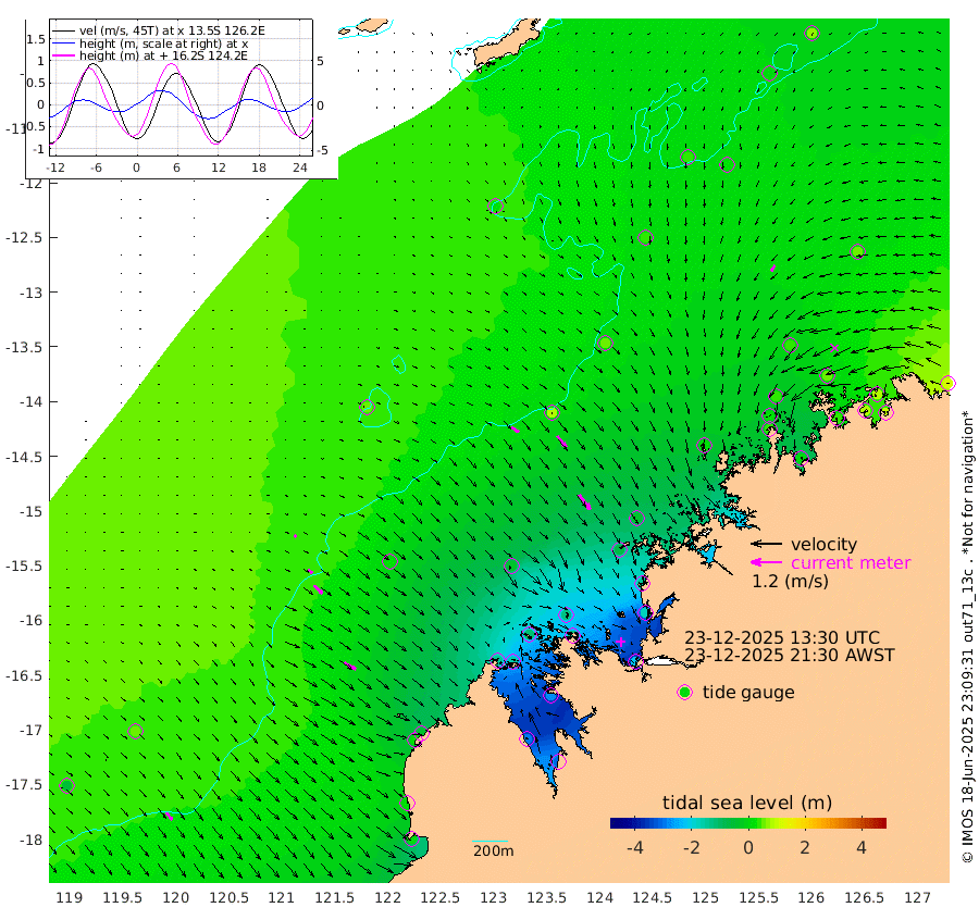 34cm/s 126T +10cm/s rms + 1cm/s 1T. NWSBRW 205m 35cm/s 141T +11cm/s rms + 6cm/s -110T. NWSROW 199m 72cm/s 143T +5cm/s rms + 2cm/s 65T. CAM050 58m 55cm/s 141T +12cm/s rms + 5cm/s 92T. CAM100 99m 11cm/s 128T +7cm/s rms + 1cm/s -85T. KIM400 396m 23cm/s 129T +9cm/s rms + 5cm/s -119T. KIM200 208m 44cm/s 135T +11cm/s rms + 5cm/s -147T. KIM100 99m 51cm/s 120T +8cm/s rms + 3cm/s -103T. KIM050 59m 28cm/s -143T +4cm/s rms + 2cm/s 23T. TIMORS88 91m -48cm Imperieuse Reef 47cm Mermaid Reef 8cm Broome 22cm Cape Baskerville -44cm Red Bluff 28cm Cape Boileau 48cm Scott Reef (WA) 27cm Ashmore Reef -149cm Karrakatta Bay -158cm Sunday Island -297cm Valentine Island -307cm Derby -275cm Port Usborne -111cm Bedford Islands -129cm Yampi Sound (Koolan Island) -131cm Macleay Island -34cm Adele Island 89cm Browse Island -216cm Shale Island -166cm Lizard Island -148cm Hall Point -62cm Degerando Island -32cm White Island 38cm Skua No. 4 Well 24cm Jabiru 24cm Maret Island 18cm Baudin Island 34cm Cape Voltaire (Krait Bay) 9cm Dillon Shoal 64cm Laminaria 13cm Port Warrender 46cm Troughton Island 39cm Cassini Island 44cm West Holothuria Reef Offshore 38cm Jar Island 21cm Lynher Bank 46cm Heywood Shoal 35cm Pee Shoal 49cm Van Cloon Shoal 82cm Carronade Island 87cm Guy Point 93cm Napier Broome Bay 118cm Lesueur Island