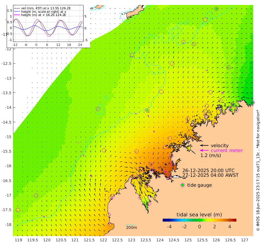 18cm/s -41T +10cm/s rms + 1cm/s 1T. NWSBRW 205m 21cm/s -24T +11cm/s rms + 6cm/s -110T. NWSROW 199m 24cm/s -29T +5cm/s rms + 2cm/s 65T. CAM050 58m 22cm/s -22T +12cm/s rms + 5cm/s 92T. CAM100 99m 6cm/s -9T +7cm/s rms + 1cm/s -85T. KIM400 396m 10cm/s -19T +9cm/s rms + 5cm/s -119T. KIM200 208m 21cm/s -19T +11cm/s rms + 5cm/s -147T. KIM100 99m 30cm/s -9T +8cm/s rms + 3cm/s -103T. KIM050 59m 20cm/s 32T +4cm/s rms + 2cm/s 23T. TIMORS88 91m 107cm Imperieuse Reef 66cm Mermaid Reef 197cm Broome 133cm Cape Baskerville 180cm Red Bluff 146cm Cape Boileau 64cm Scott Reef (WA) 85cm Ashmore Reef 237cm Karrakatta Bay 217cm Sunday Island 180cm Valentine Island 124cm Derby 192cm Port Usborne 228cm Bedford Islands 281cm Yampi Sound (Koolan Island) 294cm Macleay Island 176cm Adele Island 56cm Browse Island 360cm Shale Island 373cm Lizard Island 221cm Hall Point 229cm Degerando Island 204cm White Island 94cm Skua No. 4 Well 68cm Jabiru 156cm Maret Island 134cm Baudin Island 146cm Cape Voltaire (Krait Bay) 76cm Dillon Shoal 35cm Laminaria 161cm Port Warrender 95cm Troughton Island 132cm Cassini Island 91cm West Holothuria Reef Offshore 96cm Jar Island 111cm Lynher Bank 126cm Heywood Shoal 80cm Pee Shoal 55cm Van Cloon Shoal 44cm Carronade Island 43cm Guy Point 53cm Napier Broome Bay -34cm Lesueur Island