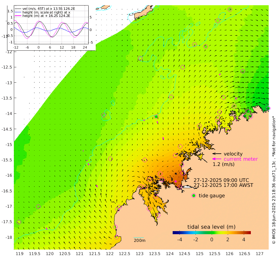 17cm/s -43T +10cm/s rms + 1cm/s 1T. NWSBRW 205m 24cm/s -27T +11cm/s rms + 6cm/s -110T. NWSROW 199m 35cm/s -22T +5cm/s rms + 2cm/s 65T. CAM050 58m 27cm/s -18T +12cm/s rms + 5cm/s 92T. CAM100 99m 6cm/s -10T +7cm/s rms + 1cm/s -85T. KIM400 396m 13cm/s -23T +9cm/s rms + 5cm/s -119T. KIM200 208m 26cm/s -21T +11cm/s rms + 5cm/s -147T. KIM100 99m 31cm/s -22T +8cm/s rms + 3cm/s -103T. KIM050 59m 23cm/s 46T +4cm/s rms + 2cm/s 23T. TIMORS88 91m 102cm Imperieuse Reef 56cm Mermaid Reef 147cm Broome 101cm Cape Baskerville 134cm Red Bluff 86cm Cape Boileau 51cm Scott Reef (WA) 83cm Ashmore Reef 221cm Karrakatta Bay 212cm Sunday Island 233cm Valentine Island 202cm Derby 240cm Port Usborne 215cm Bedford Islands 247cm Yampi Sound (Koolan Island) 267cm Macleay Island 157cm Adele Island 28cm Browse Island 325cm Shale Island 302cm Lizard Island 172cm Hall Point 186cm Degerando Island 163cm White Island 81cm Skua No. 4 Well 60cm Jabiru 127cm Maret Island 118cm Baudin Island 109cm Cape Voltaire (Krait Bay) 69cm Dillon Shoal 48cm Laminaria 117cm Port Warrender 89cm Troughton Island 108cm Cassini Island 77cm West Holothuria Reef Offshore 78cm Jar Island 94cm Lynher Bank 83cm Heywood Shoal 76cm Pee Shoal 46cm Van Cloon Shoal 27cm Carronade Island 22cm Guy Point 21cm Napier Broome Bay -16cm Lesueur Island