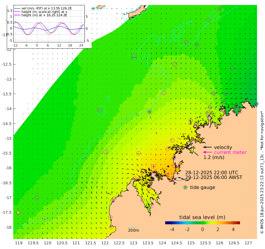 12cm/s -41T +10cm/s rms + 1cm/s 1T. NWSBRW 205m 15cm/s -27T +11cm/s rms + 6cm/s -110T. NWSROW 199m 20cm/s -26T +5cm/s rms + 2cm/s 65T. CAM050 58m 18cm/s -24T +12cm/s rms + 5cm/s 92T. CAM100 99m 4cm/s -3T +7cm/s rms + 1cm/s -85T. KIM400 396m 7cm/s -23T +9cm/s rms + 5cm/s -119T. KIM200 208m 16cm/s -23T +11cm/s rms + 5cm/s -147T. KIM100 99m 21cm/s -15T +8cm/s rms + 3cm/s -103T. KIM050 59m 11cm/s 41T +4cm/s rms + 2cm/s 23T. TIMORS88 91m 61cm Imperieuse Reef 33cm Mermaid Reef 116cm Broome 71cm Cape Baskerville 102cm Red Bluff 79cm Cape Boileau 34cm Scott Reef (WA) 40cm Ashmore Reef 155cm Karrakatta Bay 148cm Sunday Island 133cm Valentine Island 107cm Derby 148cm Port Usborne 150cm Bedford Islands 180cm Yampi Sound (Koolan Island) 207cm Macleay Island 112cm Adele Island 23cm Browse Island 236cm Shale Island 246cm Lizard Island 74cm Hall Point 135cm Degerando Island 117cm White Island 51cm Skua No. 4 Well 22cm Jabiru 81cm Maret Island 61cm Baudin Island 70cm Cape Voltaire (Krait Bay) 36cm Dillon Shoal 15cm Laminaria 68cm Port Warrender 24cm Troughton Island 59cm Cassini Island 32cm West Holothuria Reef Offshore 25cm Jar Island 61cm Lynher Bank 67cm Heywood Shoal 36cm Pee Shoal 3cm Van Cloon Shoal -17cm Carronade Island -16cm Guy Point -13cm Napier Broome Bay -90cm Lesueur Island