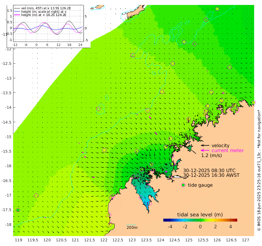 14cm/s 122T +10cm/s rms + 1cm/s 1T. NWSBRW 205m 17cm/s 129T +11cm/s rms + 6cm/s -110T. NWSROW 199m 45cm/s 138T +5cm/s rms + 2cm/s 65T. CAM050 58m 33cm/s 133T +12cm/s rms + 5cm/s 92T. CAM100 99m 7cm/s 106T +7cm/s rms + 1cm/s -85T. KIM400 396m 16cm/s 110T +9cm/s rms + 5cm/s -119T. KIM200 208m 29cm/s 118T +11cm/s rms + 5cm/s -147T. KIM100 99m 34cm/s 93T +8cm/s rms + 3cm/s -103T. KIM050 59m 6cm/s -128T +4cm/s rms + 2cm/s 23T. TIMORS88 91m 19cm Imperieuse Reef 84cm Mermaid Reef 127cm Broome 101cm Cape Baskerville 49cm Red Bluff 88cm Cape Boileau 76cm Scott Reef (WA) 69cm Ashmore Reef 11cm Karrakatta Bay 0cm Sunday Island -138cm Valentine Island -184cm Derby -105cm Port Usborne 57cm Bedford Islands 73cm Yampi Sound (Koolan Island) 65cm Macleay Island 74cm Adele Island 102cm Browse Island 56cm Shale Island 72cm Lizard Island -5cm Hall Point 90cm Degerando Island 109cm White Island 76cm Skua No. 4 Well 43cm Jabiru 108cm Maret Island 105cm Baudin Island 111cm Cape Voltaire (Krait Bay) 43cm Dillon Shoal 81cm Laminaria 108cm Port Warrender 93cm Troughton Island 102cm Cassini Island 88cm West Holothuria Reef Offshore 88cm Jar Island 92cm Lynher Bank 103cm Heywood Shoal 62cm Pee Shoal 57cm Van Cloon Shoal 88cm Carronade Island 95cm Guy Point 84cm Napier Broome Bay 87cm Lesueur Island