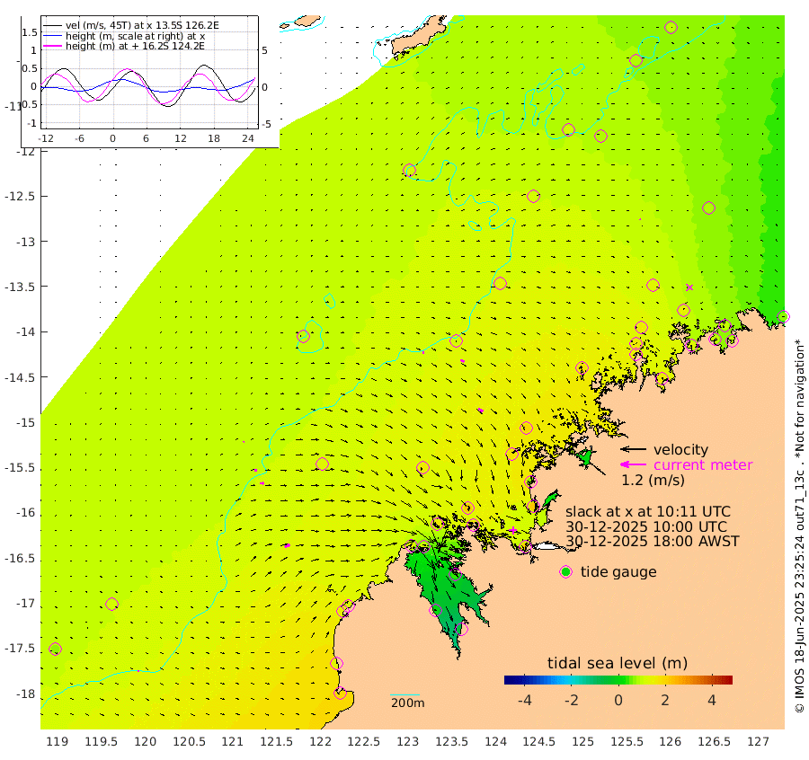 6cm/s 89T +10cm/s rms + 1cm/s 1T. NWSBRW 205m 7cm/s 89T +11cm/s rms + 6cm/s -110T. NWSROW 199m 25cm/s 124T +5cm/s rms + 2cm/s 65T. CAM050 58m 19cm/s 112T +12cm/s rms + 5cm/s 92T. CAM100 99m 6cm/s 82T +7cm/s rms + 1cm/s -85T. KIM400 396m 11cm/s 90T +9cm/s rms + 5cm/s -119T. KIM200 208m 18cm/s 88T +11cm/s rms + 5cm/s -147T. KIM100 99m 27cm/s 62T +8cm/s rms + 3cm/s -103T. KIM050 59m 3cm/s -74T +4cm/s rms + 2cm/s 23T. TIMORS88 91m 72cm Imperieuse Reef 106cm Mermaid Reef 191cm Broome 145cm Cape Baskerville 110cm Red Bluff 134cm Cape Boileau 100cm Scott Reef (WA) 110cm Ashmore Reef 125cm Karrakatta Bay 110cm Sunday Island 11cm Valentine Island -47cm Derby 36cm Port Usborne 161cm Bedford Islands 189cm Yampi Sound (Koolan Island) 212cm Macleay Island 156cm Adele Island 119cm Browse Island 206cm Shale Island 222cm Lizard Island 74cm Hall Point 175cm Degerando Island 180cm White Island 120cm Skua No. 4 Well 82cm Jabiru 170cm Maret Island 156cm Baudin Island 161cm Cape Voltaire (Krait Bay) 81cm Dillon Shoal 97cm Laminaria 163cm Port Warrender 140cm Troughton Island 155cm Cassini Island 125cm West Holothuria Reef Offshore 123cm Jar Island 132cm Lynher Bank 139cm Heywood Shoal 106cm Pee Shoal 84cm Van Cloon Shoal 100cm Carronade Island 105cm Guy Point 98cm Napier Broome Bay 75cm Lesueur Island