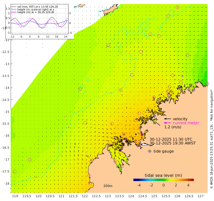11cm/s -28T +10cm/s rms + 1cm/s 1T. NWSBRW 205m 13cm/s -12T +11cm/s rms + 6cm/s -110T. NWSROW 199m 13cm/s 1T +5cm/s rms + 2cm/s 65T. CAM050 58m 13cm/s 9T +12cm/s rms + 5cm/s 92T. CAM100 99m 4cm/s 29T +7cm/s rms + 1cm/s -85T. KIM400 396m 6cm/s 12T +9cm/s rms + 5cm/s -119T. KIM200 208m 16cm/s 7T +11cm/s rms + 5cm/s -147T. KIM100 99m 22cm/s 3T +8cm/s rms + 3cm/s -103T. KIM050 59m 6cm/s 17T +4cm/s rms + 2cm/s 23T. TIMORS88 91m 101cm Imperieuse Reef 84cm Mermaid Reef 168cm Broome 128cm Cape Baskerville 123cm Red Bluff 120cm Cape Boileau 83cm Scott Reef (WA) 110cm Ashmore Reef 188cm Karrakatta Bay 174cm Sunday Island 173cm Valentine Island 128cm Derby 173cm Port Usborne 196cm Bedford Islands 222cm Yampi Sound (Koolan Island) 265cm Macleay Island 170cm Adele Island 83cm Browse Island 265cm Shale Island 270cm Lizard Island 133cm Hall Point 184cm Degerando Island 172cm White Island 117cm Skua No. 4 Well 96cm Jabiru 162cm Maret Island 145cm Baudin Island 146cm Cape Voltaire (Krait Bay) 92cm Dillon Shoal 77cm Laminaria 155cm Port Warrender 141cm Troughton Island 149cm Cassini Island 117cm West Holothuria Reef Offshore 117cm Jar Island 117cm Lynher Bank 118cm Heywood Shoal 113cm Pee Shoal 88cm Van Cloon Shoal 83cm Carronade Island 83cm Guy Point 82cm Napier Broome Bay 55cm Lesueur Island