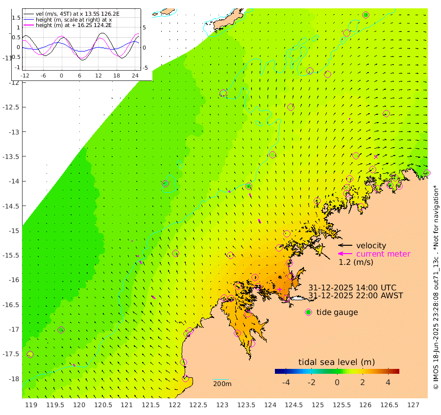 20cm/s -40T +10cm/s rms + 1cm/s 1T. NWSBRW 205m 23cm/s -28T +11cm/s rms + 6cm/s -110T. NWSROW 199m 38cm/s -31T +5cm/s rms + 2cm/s 65T. CAM050 58m 29cm/s -28T +12cm/s rms + 5cm/s 92T. CAM100 99m 6cm/s -34T +7cm/s rms + 1cm/s -85T. KIM400 396m 14cm/s -39T +9cm/s rms + 5cm/s -119T. KIM200 208m 29cm/s -30T +11cm/s rms + 5cm/s -147T. KIM100 99m 31cm/s -39T +8cm/s rms + 3cm/s -103T. KIM050 59m 13cm/s 25T +4cm/s rms + 2cm/s 23T. TIMORS88 91m 103cm Imperieuse Reef 40cm Mermaid Reef 107cm Broome 83cm Cape Baskerville 112cm Red Bluff 86cm Cape Boileau 44cm Scott Reef (WA) 82cm Ashmore Reef 195cm Karrakatta Bay 183cm Sunday Island 268cm Valentine Island 243cm Derby 240cm Port Usborne 176cm Bedford Islands 194cm Yampi Sound (Koolan Island) 233cm Macleay Island 137cm Adele Island 31cm Browse Island 248cm Shale Island 240cm Lizard Island 208cm Hall Point 152cm Degerando Island 123cm White Island 83cm Skua No. 4 Well 95cm Jabiru 119cm Maret Island 104cm Baudin Island 103cm Cape Voltaire (Krait Bay) 81cm Dillon Shoal 31cm Laminaria 124cm Port Warrender 117cm Troughton Island 113cm Cassini Island 86cm West Holothuria Reef Offshore 93cm Jar Island 72cm Lynher Bank 72cm Heywood Shoal 93cm Pee Shoal 79cm Van Cloon Shoal 63cm Carronade Island 58cm Guy Point 67cm Napier Broome Bay 46cm Lesueur Island