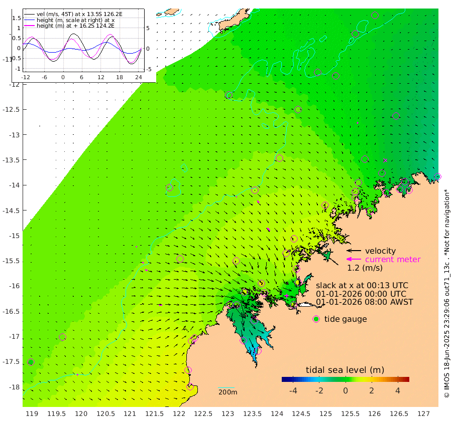 7cm/s 99T +10cm/s rms + 1cm/s 1T. NWSBRW 205m 11cm/s 118T +11cm/s rms + 6cm/s -110T. NWSROW 199m 33cm/s 140T +5cm/s rms + 2cm/s 65T. CAM050 58m 21cm/s 134T +12cm/s rms + 5cm/s 92T. CAM100 99m 7cm/s 99T +7cm/s rms + 1cm/s -85T. KIM400 396m 13cm/s 108T +9cm/s rms + 5cm/s -119T. KIM200 208m 20cm/s 110T +11cm/s rms + 5cm/s -147T. KIM100 99m 26cm/s 81T +8cm/s rms + 3cm/s -103T. KIM050 59m 11cm/s -150T +4cm/s rms + 2cm/s 23T. TIMORS88 91m 0cm Imperieuse Reef 52cm Mermaid Reef 146cm Broome 96cm Cape Baskerville 92cm Red Bluff 91cm Cape Boileau 48cm Scott Reef (WA) 31cm Ashmore Reef 69cm Karrakatta Bay 52cm Sunday Island -99cm Valentine Island -147cm Derby -55cm Port Usborne 107cm Bedford Islands 121cm Yampi Sound (Koolan Island) 168cm Macleay Island 104cm Adele Island 84cm Browse Island 125cm Shale Island 129cm Lizard Island 66cm Hall Point 110cm Degerando Island 113cm White Island 46cm Skua No. 4 Well 14cm Jabiru 94cm Maret Island 73cm Baudin Island 70cm Cape Voltaire (Krait Bay) -1cm Dillon Shoal 24cm Laminaria 51cm Port Warrender -6cm Troughton Island 58cm Cassini Island 25cm West Holothuria Reef Offshore -4cm Jar Island 69cm Lynher Bank 71cm Heywood Shoal 15cm Pee Shoal -33cm Van Cloon Shoal -39cm Carronade Island -36cm Guy Point -41cm Napier Broome Bay -129cm Lesueur Island