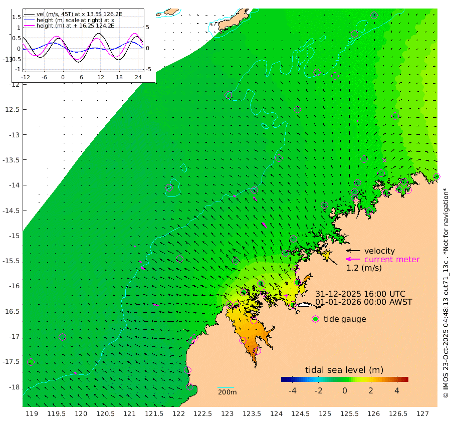 22cm/s -60T +10cm/s rms + 1cm/s 1T. NWSBRW 205m 25cm/s -47T +11cm/s rms + 6cm/s -110T. NWSROW 199m 58cm/s -39T +5cm/s rms + 2cm/s 65T. CAM050 58m 43cm/s -42T +12cm/s rms + 5cm/s 92T. CAM100 99m 10cm/s -67T +7cm/s rms + 1cm/s -85T. KIM400 396m 22cm/s -61T +9cm/s rms + 5cm/s -119T. KIM200 208m 38cm/s -53T +11cm/s rms + 5cm/s -147T. KIM100 99m 42cm/s -76T +8cm/s rms + 3cm/s -103T. KIM050 59m 14cm/s 15T +4cm/s rms + 2cm/s 23T. TIMORS88 91m 30cm Imperieuse Reef -62cm Mermaid Reef -89cm Broome -65cm Cape Baskerville -22cm Red Bluff -55cm Cape Boileau -55cm Scott Reef (WA) -26cm Ashmore Reef 45cm Karrakatta Bay 47cm Sunday Island 228cm Valentine Island 256cm Derby 177cm Port Usborne -5cm Bedford Islands -11cm Yampi Sound (Koolan Island) -17cm Macleay Island -36cm Adele Island -79cm Browse Island 24cm Shale Island 9cm Lizard Island 76cm Hall Point -31cm Degerando Island -57cm White Island -39cm Skua No. 4 Well -2cm Jabiru -53cm Maret Island -46cm Baudin Island -51cm Cape Voltaire (Krait Bay) -4cm Dillon Shoal -62cm Laminaria -28cm Port Warrender -2cm Troughton Island -37cm Cassini Island -29cm West Holothuria Reef Offshore -7cm Jar Island -57cm Lynher Bank -70cm Heywood Shoal -14cm Pee Shoal 10cm Van Cloon Shoal -7cm Carronade Island -18cm Guy Point -3cm Napier Broome Bay 30cm Lesueur Island