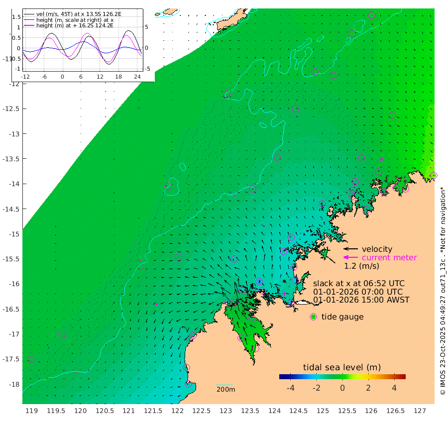 7cm/s 151T +10cm/s rms + 1cm/s 1T. NWSBRW 205m 6cm/s -177T +11cm/s rms + 6cm/s -110T. NWSROW 199m 7cm/s -35T +5cm/s rms + 2cm/s 65T. CAM050 58m 3cm/s -108T +12cm/s rms + 5cm/s 92T. CAM100 99m 3cm/s -126T +7cm/s rms + 1cm/s -85T. KIM400 396m 5cm/s -125T +9cm/s rms + 5cm/s -119T. KIM200 208m 10cm/s -144T +11cm/s rms + 5cm/s -147T. KIM100 99m 17cm/s -150T +8cm/s rms + 3cm/s -103T. KIM050 59m 12cm/s 90T +4cm/s rms + 2cm/s 23T. TIMORS88 91m -48cm Imperieuse Reef -49cm Mermaid Reef -164cm Broome -112cm Cape Baskerville -116cm Red Bluff -116cm Cape Boileau -50cm Scott Reef (WA) -56cm Ashmore Reef -143cm Karrakatta Bay -116cm Sunday Island -50cm Valentine Island 7cm Derby -65cm Port Usborne -160cm Bedford Islands -185cm Yampi Sound (Koolan Island) -241cm Macleay Island -141cm Adele Island -90cm Browse Island -214cm Shale Island -225cm Lizard Island -159cm Hall Point -161cm Degerando Island -149cm White Island -67cm Skua No. 4 Well -47cm Jabiru -132cm Maret Island -108cm Baudin Island -107cm Cape Voltaire (Krait Bay) -26cm Dillon Shoal -8cm Laminaria -111cm Port Warrender -60cm Troughton Island -102cm Cassini Island -61cm West Holothuria Reef Offshore -51cm Jar Island -82cm Lynher Bank -77cm Heywood Shoal -48cm Pee Shoal -16cm Van Cloon Shoal -11cm Carronade Island -7cm Guy Point -14cm Napier Broome Bay 60cm Lesueur Island