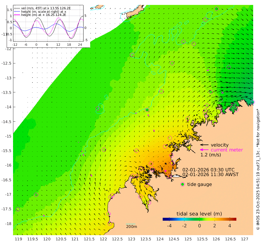 17cm/s -36T +10cm/s rms + 1cm/s 1T. NWSBRW 205m 21cm/s -29T +11cm/s rms + 6cm/s -110T. NWSROW 199m 29cm/s -20T +5cm/s rms + 2cm/s 65T. CAM050 58m 23cm/s -18T +12cm/s rms + 5cm/s 92T. CAM100 99m 5cm/s -12T +7cm/s rms + 1cm/s -85T. KIM400 396m 12cm/s -25T +9cm/s rms + 5cm/s -119T. KIM200 208m 22cm/s -23T +11cm/s rms + 5cm/s -147T. KIM100 99m 28cm/s -20T +8cm/s rms + 3cm/s -103T. KIM050 59m 30cm/s 69T +4cm/s rms + 2cm/s 23T. TIMORS88 91m 73cm Imperieuse Reef 36cm Mermaid Reef 130cm Broome 91cm Cape Baskerville 159cm Red Bluff 82cm Cape Boileau 33cm Scott Reef (WA) 54cm Ashmore Reef 204cm Karrakatta Bay 195cm Sunday Island 185cm Valentine Island 156cm Derby 190cm Port Usborne 206cm Bedford Islands 211cm Yampi Sound (Koolan Island) 241cm Macleay Island 140cm Adele Island 0cm Browse Island 277cm Shale Island 231cm Lizard Island 262cm Hall Point 164cm Degerando Island 121cm White Island 57cm Skua No. 4 Well 67cm Jabiru 100cm Maret Island 80cm Baudin Island 69cm Cape Voltaire (Krait Bay) 46cm Dillon Shoal 26cm Laminaria 69cm Port Warrender 18cm Troughton Island 70cm Cassini Island 33cm West Holothuria Reef Offshore 10cm Jar Island 66cm Lynher Bank 71cm Heywood Shoal 49cm Pee Shoal -3cm Van Cloon Shoal -43cm Carronade Island -44cm Guy Point -45cm Napier Broome Bay -127cm Lesueur Island