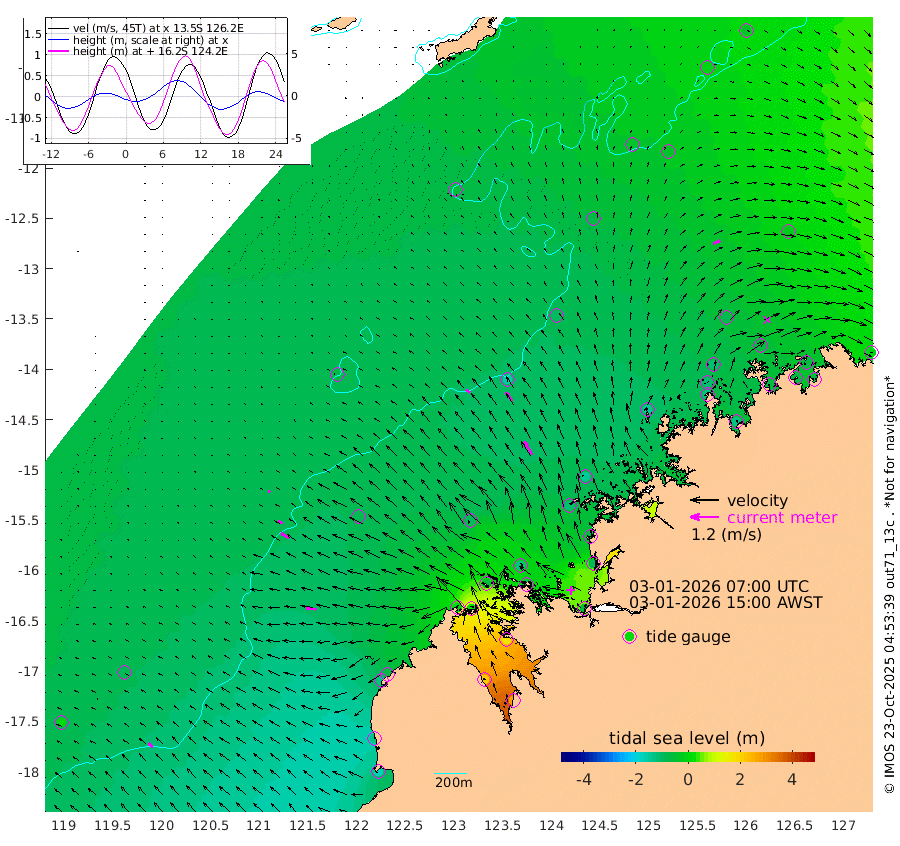 22cm/s -55T +10cm/s rms + 1cm/s 1T. NWSBRW 205m 24cm/s -51T +11cm/s rms + 6cm/s -110T. NWSROW 199m 64cm/s -32T +5cm/s rms + 2cm/s 65T. CAM050 58m 44cm/s -37T +12cm/s rms + 5cm/s 92T. CAM100 99m 10cm/s -68T +7cm/s rms + 1cm/s -85T. KIM400 396m 22cm/s -63T +9cm/s rms + 5cm/s -119T. KIM200 208m 38cm/s -58T +11cm/s rms + 5cm/s -147T. KIM100 99m 44cm/s -82T +8cm/s rms + 3cm/s -103T. KIM050 59m 33cm/s 65T +4cm/s rms + 2cm/s 23T. TIMORS88 91m 8cm Imperieuse Reef -75cm Mermaid Reef -171cm Broome -124cm Cape Baskerville -71cm Red Bluff -128cm Cape Boileau -73cm Scott Reef (WA) -53cm Ashmore Reef -9cm Karrakatta Bay 23cm Sunday Island 211cm Valentine Island 283cm Derby 175cm Port Usborne -58cm Bedford Islands -86cm Yampi Sound (Koolan Island) -134cm Macleay Island -102cm Adele Island -158cm Browse Island -52cm Shale Island -84cm Lizard Island -89cm Hall Point -110cm Degerando Island -136cm White Island -70cm Skua No. 4 Well -41cm Jabiru -135cm Maret Island -117cm Baudin Island -124cm Cape Voltaire (Krait Bay) -15cm Dillon Shoal -32cm Laminaria -123cm Port Warrender -74cm Troughton Island -111cm Cassini Island -82cm West Holothuria Reef Offshore -70cm Jar Island -89cm Lynher Bank -100cm Heywood Shoal -41cm Pee Shoal -27cm Van Cloon Shoal -62cm Carronade Island -65cm Guy Point -64cm Napier Broome Bay -11cm Lesueur Island