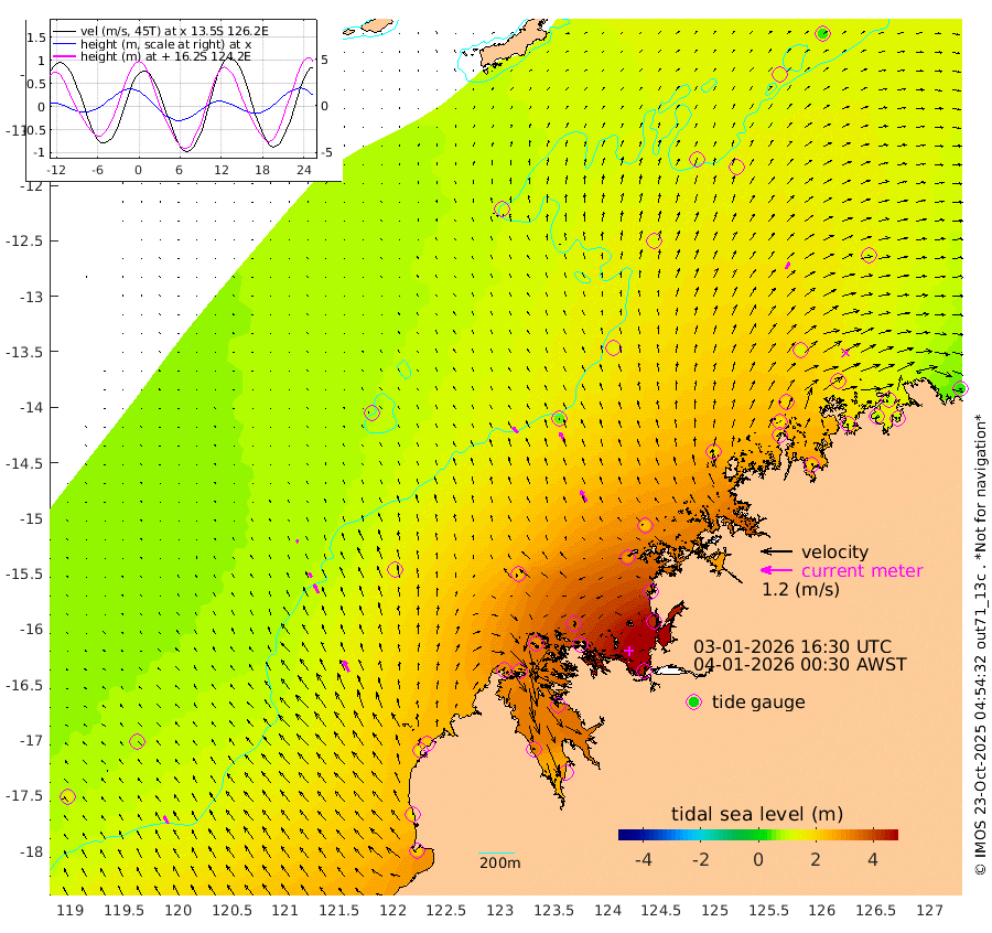 29cm/s -43T +10cm/s rms + 1cm/s 1T. NWSBRW 205m 34cm/s -29T +11cm/s rms + 6cm/s -110T. NWSROW 199m 47cm/s -29T +5cm/s rms + 2cm/s 65T. CAM050 58m 40cm/s -24T +12cm/s rms + 5cm/s 92T. CAM100 99m 10cm/s -30T +7cm/s rms + 1cm/s -85T. KIM400 396m 20cm/s -32T +9cm/s rms + 5cm/s -119T. KIM200 208m 39cm/s -26T +11cm/s rms + 5cm/s -147T. KIM100 99m 46cm/s -25T +8cm/s rms + 3cm/s -103T. KIM050 59m 28cm/s 31T +4cm/s rms + 2cm/s 23T. TIMORS88 91m 159cm Imperieuse Reef 76cm Mermaid Reef 222cm Broome 161cm Cape Baskerville 213cm Red Bluff 176cm Cape Boileau 79cm Scott Reef (WA) 123cm Ashmore Reef 314cm Karrakatta Bay 298cm Sunday Island 325cm Valentine Island 275cm Derby 318cm Port Usborne 305cm Bedford Islands 346cm Yampi Sound (Koolan Island) 373cm Macleay Island 226cm Adele Island 60cm Browse Island 440cm Shale Island 430cm Lizard Island 349cm Hall Point 288cm Degerando Island 237cm White Island 128cm Skua No. 4 Well 129cm Jabiru 204cm Maret Island 177cm Baudin Island 189cm Cape Voltaire (Krait Bay) 121cm Dillon Shoal 43cm Laminaria 224cm Port Warrender 165cm Troughton Island 184cm Cassini Island 134cm West Holothuria Reef Offshore 147cm Jar Island 137cm Lynher Bank 149cm Heywood Shoal 129cm Pee Shoal 109cm Van Cloon Shoal 94cm Carronade Island 91cm Guy Point 104cm Napier Broome Bay 35cm Lesueur Island