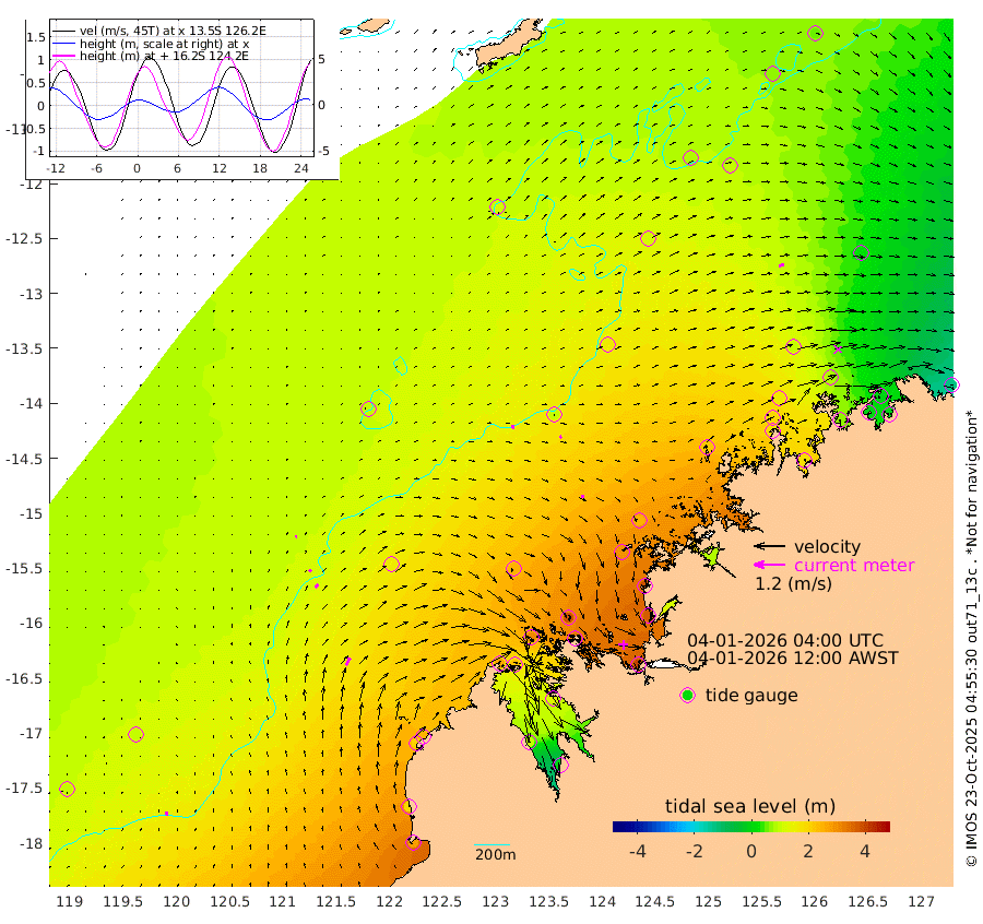 13cm/s -18T +10cm/s rms + 1cm/s 1T. NWSBRW 205m 15cm/s -3T +11cm/s rms + 6cm/s -110T. NWSROW 199m 9cm/s 92T +5cm/s rms + 2cm/s 65T. CAM050 58m 9cm/s 58T +12cm/s rms + 5cm/s 92T. CAM100 99m 6cm/s 52T +7cm/s rms + 1cm/s -85T. KIM400 396m 10cm/s 42T +9cm/s rms + 5cm/s -119T. KIM200 208m 17cm/s 37T +11cm/s rms + 5cm/s -147T. KIM100 99m 34cm/s 29T +8cm/s rms + 3cm/s -103T. KIM050 59m 23cm/s 67T +4cm/s rms + 2cm/s 23T. TIMORS88 91m 92cm Imperieuse Reef 99cm Mermaid Reef 281cm Broome 200cm Cape Baskerville 251cm Red Bluff 183cm Cape Boileau 90cm Scott Reef (WA) 105cm Ashmore Reef 266cm Karrakatta Bay 239cm Sunday Island 99cm Valentine Island 7cm Derby 130cm Port Usborne 312cm Bedford Islands 336cm Yampi Sound (Koolan Island) 380cm Macleay Island 241cm Adele Island 97cm Browse Island 404cm Shale Island 371cm Lizard Island 377cm Hall Point 291cm Degerando Island 254cm White Island 114cm Skua No. 4 Well 99cm Jabiru 216cm Maret Island 184cm Baudin Island 174cm Cape Voltaire (Krait Bay) 61cm Dillon Shoal 59cm Laminaria 178cm Port Warrender 76cm Troughton Island 162cm Cassini Island 97cm West Holothuria Reef Offshore 67cm Jar Island 152cm Lynher Bank 154cm Heywood Shoal 87cm Pee Shoal 18cm Van Cloon Shoal -6cm Carronade Island -6cm Guy Point -10cm Napier Broome Bay -134cm Lesueur Island