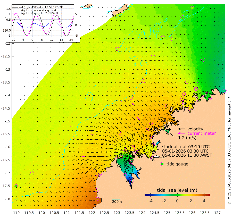 8cm/s 74T +10cm/s rms + 1cm/s 1T. NWSBRW 205m 16cm/s 107T +11cm/s rms + 6cm/s -110T. NWSROW 199m 56cm/s 140T +5cm/s rms + 2cm/s 65T. CAM050 58m 39cm/s 132T +12cm/s rms + 5cm/s 92T. CAM100 99m 11cm/s 95T +7cm/s rms + 1cm/s -85T. KIM400 396m 22cm/s 100T +9cm/s rms + 5cm/s -119T. KIM200 208m 36cm/s 104T +11cm/s rms + 5cm/s -147T. KIM100 99m 47cm/s 74T +8cm/s rms + 3cm/s -103T. KIM050 59m 5cm/s 153T +4cm/s rms + 2cm/s 23T. TIMORS88 91m 43cm Imperieuse Reef 125cm Mermaid Reef 317cm Broome 229cm Cape Baskerville 236cm Red Bluff 207cm Cape Boileau 112cm Scott Reef (WA) 104cm Ashmore Reef 176cm Karrakatta Bay 134cm Sunday Island -126cm Valentine Island -247cm Derby -74cm Port Usborne 251cm Bedford Islands 284cm Yampi Sound (Koolan Island) 336cm Macleay Island 232cm Adele Island 171cm Browse Island 304cm Shale Island 289cm Lizard Island 356cm Hall Point 274cm Degerando Island 268cm White Island 118cm Skua No. 4 Well 91cm Jabiru 238cm Maret Island 207cm Baudin Island 197cm Cape Voltaire (Krait Bay) 41cm Dillon Shoal 71cm Laminaria 197cm Port Warrender 83cm Troughton Island 180cm Cassini Island 115cm West Holothuria Reef Offshore 77cm Jar Island 167cm Lynher Bank 175cm Heywood Shoal 78cm Pee Shoal 13cm Van Cloon Shoal 19cm Carronade Island 21cm Guy Point 12cm Napier Broome Bay -113cm Lesueur Island