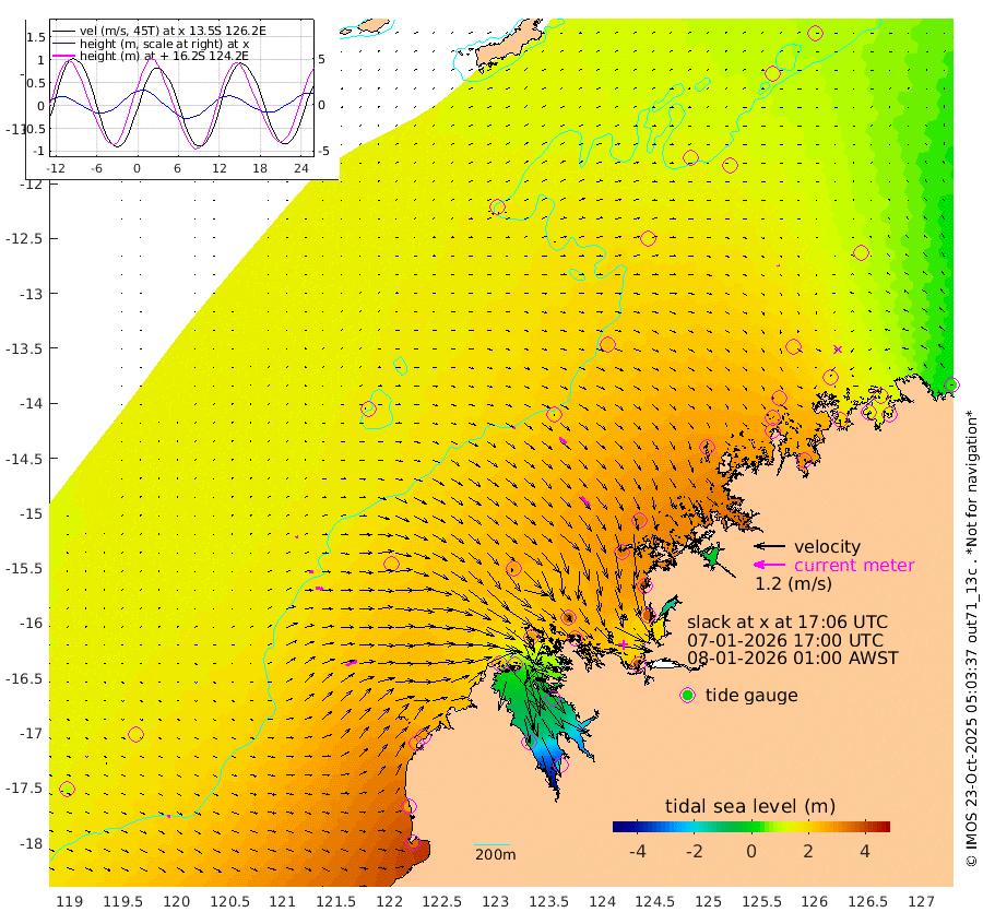6cm/s 45T +10cm/s rms + 1cm/s 1T. NWSBRW 205m 13cm/s 92T +11cm/s rms + 6cm/s -110T. NWSROW 199m 47cm/s 139T +5cm/s rms + 2cm/s 65T. CAM050 58m 32cm/s 127T +12cm/s rms + 5cm/s 92T. CAM100 99m 9cm/s 83T +7cm/s rms + 1cm/s -85T. KIM400 396m 17cm/s 95T +9cm/s rms + 5cm/s -119T. KIM200 208m 28cm/s 99T +11cm/s rms + 5cm/s -147T. KIM100 99m 47cm/s 66T +8cm/s rms + 3cm/s -103T. KIM050 59m 4cm/s -8T +4cm/s rms + 2cm/s 23T. TIMORS88 91m 93cm Imperieuse Reef 155cm Mermaid Reef 355cm Broome 264cm Cape Baskerville 281cm Red Bluff 276cm Cape Boileau 144cm Scott Reef (WA) 152cm Ashmore Reef 226cm Karrakatta Bay 193cm Sunday Island -90cm Valentine Island -201cm Derby -40cm Port Usborne 272cm Bedford Islands 337cm Yampi Sound (Koolan Island) 359cm Macleay Island 266cm Adele Island 195cm Browse Island 361cm Shale Island 369cm Lizard Island 398cm Hall Point 328cm Degerando Island 329cm White Island 161cm Skua No. 4 Well 131cm Jabiru 287cm Maret Island 268cm Baudin Island 269cm Cape Voltaire (Krait Bay) 110cm Dillon Shoal 100cm Laminaria 294cm Port Warrender 177cm Troughton Island 248cm Cassini Island 193cm West Holothuria Reef Offshore 181cm Jar Island 206cm Lynher Bank 239cm Heywood Shoal 133cm Pee Shoal 114cm Van Cloon Shoal 139cm Carronade Island 144cm Guy Point 153cm Napier Broome Bay 38cm Lesueur Island