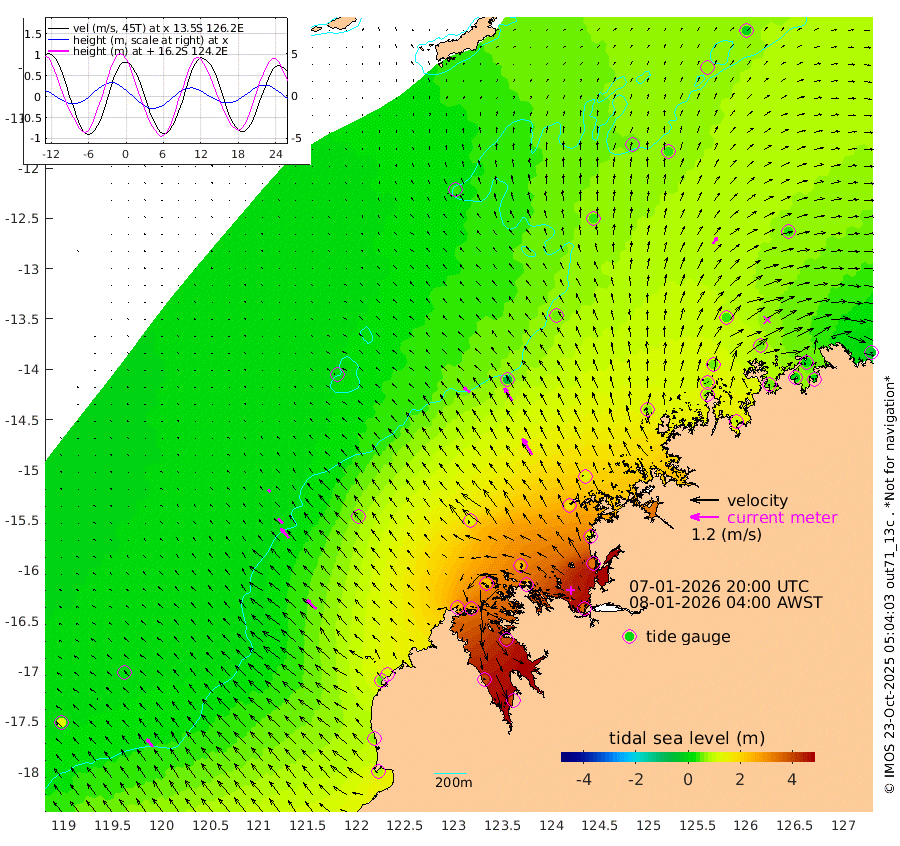 35cm/s -51T +10cm/s rms + 1cm/s 1T. NWSBRW 205m 43cm/s -37T +11cm/s rms + 6cm/s -110T. NWSROW 199m 80cm/s -31T +5cm/s rms + 2cm/s 65T. CAM050 58m 63cm/s -31T +12cm/s rms + 5cm/s 92T. CAM100 99m 13cm/s -44T +7cm/s rms + 1cm/s -85T. KIM400 396m 28cm/s -46T +9cm/s rms + 5cm/s -119T. KIM200 208m 53cm/s -40T +11cm/s rms + 5cm/s -147T. KIM100 99m 58cm/s -46T +8cm/s rms + 3cm/s -103T. KIM050 59m 32cm/s 35T +4cm/s rms + 2cm/s 23T. TIMORS88 91m 124cm Imperieuse Reef 6cm Mermaid Reef 86cm Broome 51cm Cape Baskerville 111cm Red Bluff 69cm Cape Boileau 12cm Scott Reef (WA) 42cm Ashmore Reef 254cm Karrakatta Bay 273cm Sunday Island 393cm Valentine Island 392cm Derby 377cm Port Usborne 227cm Bedford Islands 250cm Yampi Sound (Koolan Island) 252cm Macleay Island 122cm Adele Island -46cm Browse Island 353cm Shale Island 343cm Lizard Island 123cm Hall Point 174cm Degerando Island 126cm White Island 42cm Skua No. 4 Well 34cm Jabiru 69cm Maret Island 57cm Baudin Island 67cm Cape Voltaire (Krait Bay) 64cm Dillon Shoal -12cm Laminaria 97cm Port Warrender 53cm Troughton Island 54cm Cassini Island 34cm West Holothuria Reef Offshore 51cm Jar Island 58cm Lynher Bank 49cm Heywood Shoal 47cm Pee Shoal 36cm Van Cloon Shoal 4cm Carronade Island 4cm Guy Point 9cm Napier Broome Bay -35cm Lesueur Island