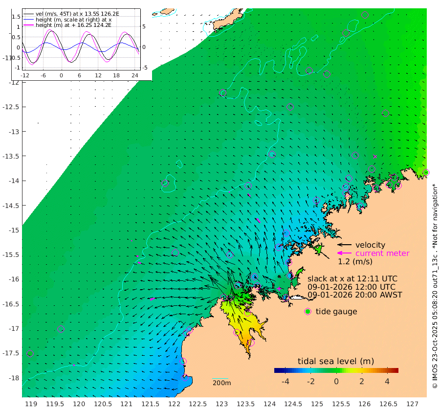 7cm/s -81T +10cm/s rms + 1cm/s 1T. NWSBRW 205m 13cm/s -59T +11cm/s rms + 6cm/s -110T. NWSROW 199m 45cm/s -41T +5cm/s rms + 2cm/s 65T. CAM050 58m 30cm/s -51T +12cm/s rms + 5cm/s 92T. CAM100 99m 7cm/s -93T +7cm/s rms + 1cm/s -85T. KIM400 396m 17cm/s -82T +9cm/s rms + 5cm/s -119T. KIM200 208m 28cm/s -73T +11cm/s rms + 5cm/s -147T. KIM100 99m 40cm/s -109T +8cm/s rms + 3cm/s -103T. KIM050 59m 1cm/s 165T +4cm/s rms + 2cm/s 23T. TIMORS88 91m -40cm Imperieuse Reef -106cm Mermaid Reef -267cm Broome -193cm Cape Baskerville -204cm Red Bluff -189cm Cape Boileau -92cm Scott Reef (WA) -87cm Ashmore Reef -145cm Karrakatta Bay -111cm Sunday Island 140cm Valentine Island 229cm Derby 87cm Port Usborne -185cm Bedford Islands -241cm Yampi Sound (Koolan Island) -252cm Macleay Island -182cm Adele Island -140cm Browse Island -261cm Shale Island -232cm Lizard Island -294cm Hall Point -234cm Degerando Island -241cm White Island -95cm Skua No. 4 Well -65cm Jabiru -194cm Maret Island -188cm Baudin Island -181cm Cape Voltaire (Krait Bay) -55cm Dillon Shoal -54cm Laminaria -192cm Port Warrender -88cm Troughton Island -159cm Cassini Island -116cm West Holothuria Reef Offshore -100cm Jar Island -138cm Lynher Bank -165cm Heywood Shoal -60cm Pee Shoal -37cm Van Cloon Shoal -59cm Carronade Island -65cm Guy Point -58cm Napier Broome Bay 38cm Lesueur Island