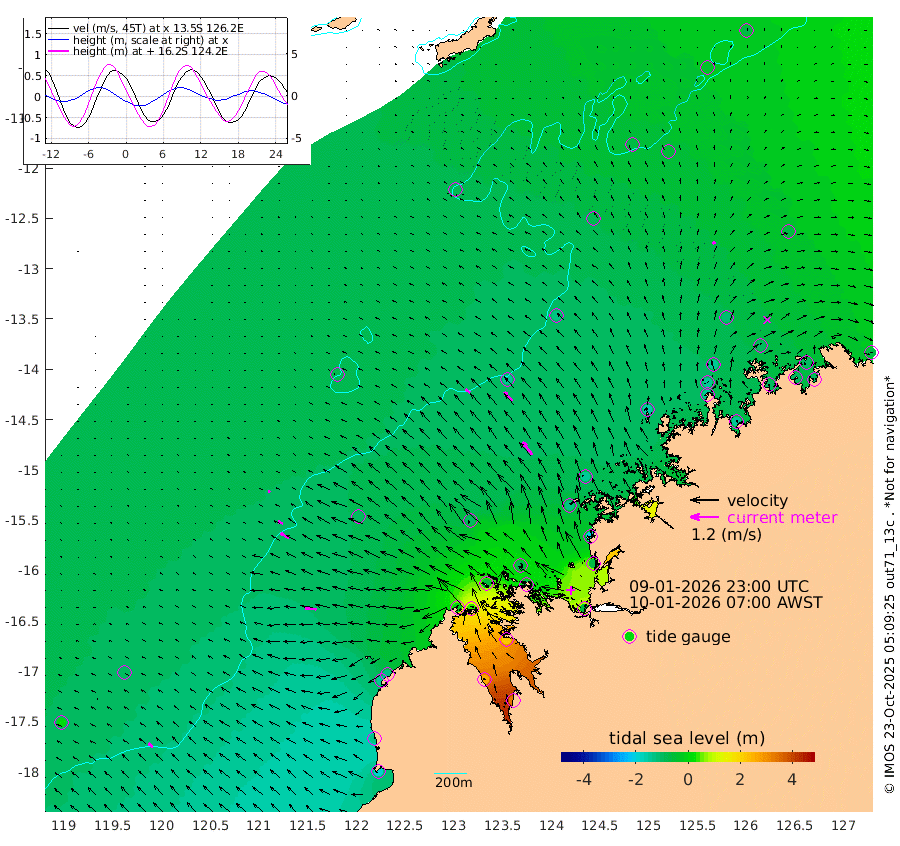23cm/s -53T +10cm/s rms + 1cm/s 1T. NWSBRW 205m 25cm/s -50T +11cm/s rms + 6cm/s -110T. NWSROW 199m 67cm/s -37T +5cm/s rms + 2cm/s 65T. CAM050 58m 50cm/s -42T +12cm/s rms + 5cm/s 92T. CAM100 99m 10cm/s -69T +7cm/s rms + 1cm/s -85T. KIM400 396m 22cm/s -67T +9cm/s rms + 5cm/s -119T. KIM200 208m 39cm/s -59T +11cm/s rms + 5cm/s -147T. KIM100 99m 48cm/s -83T +8cm/s rms + 3cm/s -103T. KIM050 59m 12cm/s 48T +4cm/s rms + 2cm/s 23T. TIMORS88 91m 0cm Imperieuse Reef -95cm Mermaid Reef -181cm Broome -137cm Cape Baskerville -120cm Red Bluff -129cm Cape Boileau -81cm Scott Reef (WA) -79cm Ashmore Reef -8cm Karrakatta Bay 30cm Sunday Island 264cm Valentine Island 336cm Derby 220cm Port Usborne -51cm Bedford Islands -89cm Yampi Sound (Koolan Island) -85cm Macleay Island -102cm Adele Island -147cm Browse Island -59cm Shale Island -74cm Lizard Island -196cm Hall Point -123cm Degerando Island -147cm White Island -81cm Skua No. 4 Well -59cm Jabiru -151cm Maret Island -142cm Baudin Island -144cm Cape Voltaire (Krait Bay) -33cm Dillon Shoal -68cm Laminaria -145cm Port Warrender -98cm Troughton Island -138cm Cassini Island -110cm West Holothuria Reef Offshore -102cm Jar Island -101cm Lynher Bank -123cm Heywood Shoal -62cm Pee Shoal -60cm Van Cloon Shoal -99cm Carronade Island -97cm Guy Point -103cm Napier Broome Bay -64cm Lesueur Island