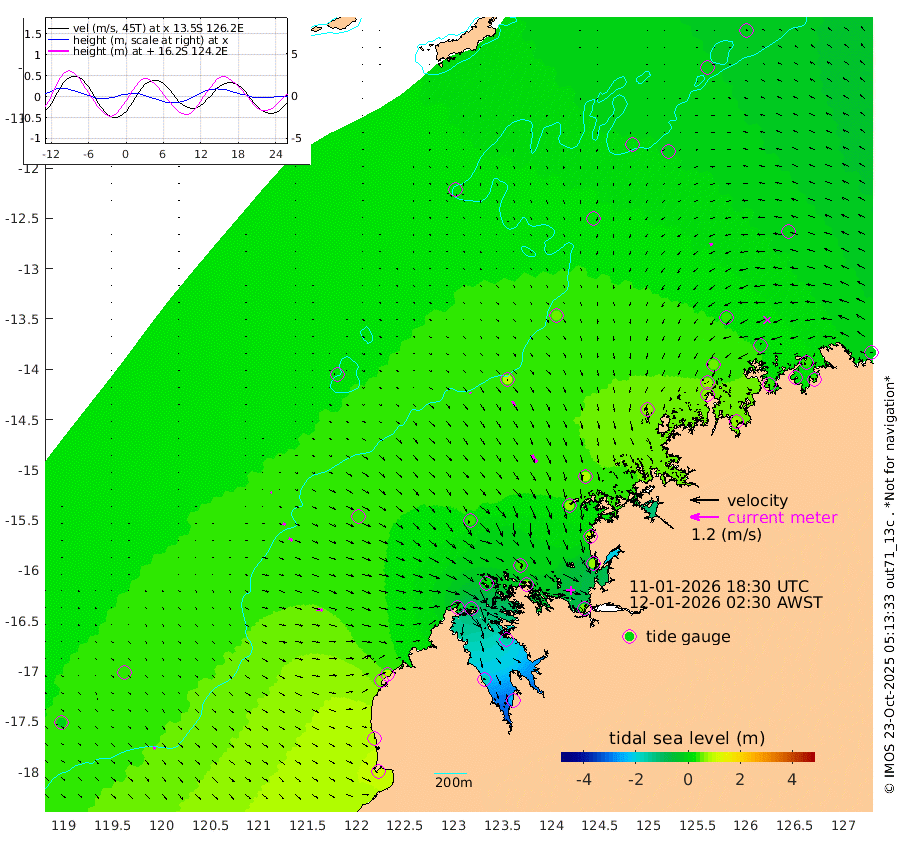 5cm/s 137T +10cm/s rms + 1cm/s 1T. NWSBRW 205m 12cm/s 129T +11cm/s rms + 6cm/s -110T. NWSROW 199m 37cm/s 150T +5cm/s rms + 2cm/s 65T. CAM050 58m 24cm/s 148T +12cm/s rms + 5cm/s 92T. CAM100 99m 5cm/s 112T +7cm/s rms + 1cm/s -85T. KIM400 396m 10cm/s 117T +9cm/s rms + 5cm/s -119T. KIM200 208m 19cm/s 126T +11cm/s rms + 5cm/s -147T. KIM100 99m 25cm/s 98T +8cm/s rms + 3cm/s -103T. KIM050 59m 12cm/s -102T +4cm/s rms + 2cm/s 23T. TIMORS88 91m -13cm Imperieuse Reef 33cm Mermaid Reef 106cm Broome 72cm Cape Baskerville 83cm Red Bluff 78cm Cape Boileau 24cm Scott Reef (WA) 18cm Ashmore Reef 7cm Karrakatta Bay -29cm Sunday Island -179cm Valentine Island -238cm Derby -156cm Port Usborne 18cm Bedford Islands 55cm Yampi Sound (Koolan Island) 37cm Macleay Island 42cm Adele Island 76cm Browse Island 50cm Shale Island 71cm Lizard Island 92cm Hall Point 71cm Degerando Island 87cm White Island 20cm Skua No. 4 Well -13cm Jabiru 70cm Maret Island 68cm Baudin Island 69cm Cape Voltaire (Krait Bay) -12cm Dillon Shoal -3cm Laminaria 72cm Port Warrender 22cm Troughton Island 59cm Cassini Island 38cm West Holothuria Reef Offshore 41cm Jar Island 40cm Lynher Bank 54cm Heywood Shoal 1cm Pee Shoal 7cm Van Cloon Shoal 30cm Carronade Island 25cm Guy Point 37cm Napier Broome Bay -9cm Lesueur Island