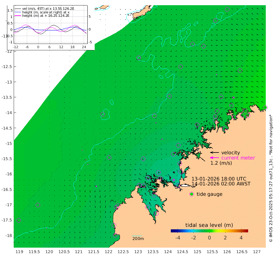4cm/s -178T +10cm/s rms + 1cm/s 1T. NWSBRW 205m 6cm/s 159T +11cm/s rms + 6cm/s -110T. NWSROW 199m 12cm/s -172T +5cm/s rms + 2cm/s 65T. CAM050 58m 10cm/s -161T +12cm/s rms + 5cm/s 92T. CAM100 99m 3cm/s -133T +7cm/s rms + 1cm/s -85T. KIM400 396m 3cm/s -151T +9cm/s rms + 5cm/s -119T. KIM200 208m 7cm/s -162T +11cm/s rms + 5cm/s -147T. KIM100 99m 12cm/s -180T +8cm/s rms + 3cm/s -103T. KIM050 59m 11cm/s -94T +4cm/s rms + 2cm/s 23T. TIMORS88 91m -44cm Imperieuse Reef -46cm Mermaid Reef -68cm Broome -61cm Cape Baskerville -67cm Red Bluff -48cm Cape Boileau -44cm Scott Reef (WA) -52cm Ashmore Reef -100cm Karrakatta Bay -114cm Sunday Island -134cm Valentine Island -117cm Derby -116cm Port Usborne -104cm Bedford Islands -108cm Yampi Sound (Koolan Island) -144cm Macleay Island -90cm Adele Island -19cm Browse Island -125cm Shale Island -104cm Lizard Island -121cm Hall Point -77cm Degerando Island -80cm White Island -54cm Skua No. 4 Well -70cm Jabiru -65cm Maret Island -66cm Baudin Island -50cm Cape Voltaire (Krait Bay) -57cm Dillon Shoal -60cm Laminaria -59cm Port Warrender -49cm Troughton Island -52cm Cassini Island -52cm West Holothuria Reef Offshore -34cm Jar Island -57cm Lynher Bank -57cm Heywood Shoal -55cm Pee Shoal -32cm Van Cloon Shoal -17cm Carronade Island -27cm Guy Point -11cm Napier Broome Bay 2cm Lesueur Island