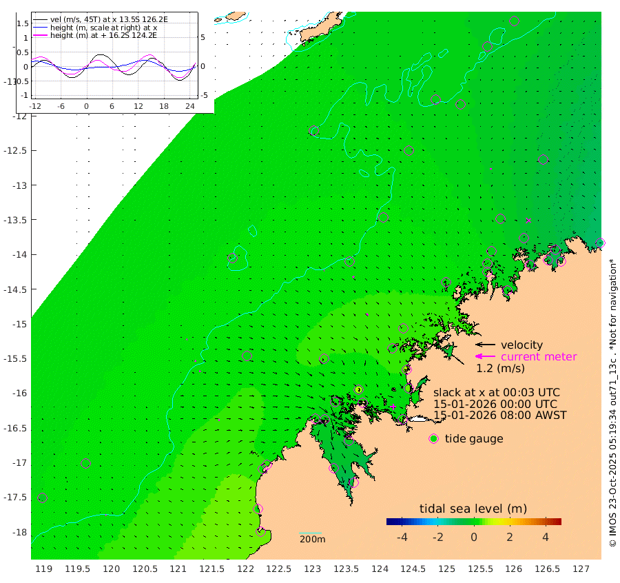 4cm/s 100T +10cm/s rms + 1cm/s 1T. NWSBRW 205m 6cm/s 129T +11cm/s rms + 6cm/s -110T. NWSROW 199m 14cm/s 144T +5cm/s rms + 2cm/s 65T. CAM050 58m 10cm/s 141T +12cm/s rms + 5cm/s 92T. CAM100 99m 4cm/s 104T +7cm/s rms + 1cm/s -85T. KIM400 396m 7cm/s 116T +9cm/s rms + 5cm/s -119T. KIM200 208m 10cm/s 117T +11cm/s rms + 5cm/s -147T. KIM100 99m 10cm/s 91T +8cm/s rms + 3cm/s -103T. KIM050 59m 8cm/s -160T +4cm/s rms + 2cm/s 23T. TIMORS88 91m -19cm Imperieuse Reef 11cm Mermaid Reef 46cm Broome 27cm Cape Baskerville 39cm Red Bluff 19cm Cape Boileau 8cm Scott Reef (WA) -5cm Ashmore Reef 18cm Karrakatta Bay 10cm Sunday Island -21cm Valentine Island -55cm Derby -25cm Port Usborne 25cm Bedford Islands 41cm Yampi Sound (Koolan Island) 81cm Macleay Island 39cm Adele Island 25cm Browse Island 42cm Shale Island 53cm Lizard Island 86cm Hall Point 24cm Degerando Island 39cm White Island 2cm Skua No. 4 Well -1cm Jabiru 21cm Maret Island 10cm Baudin Island 3cm Cape Voltaire (Krait Bay) -18cm Dillon Shoal 0cm Laminaria -3cm Port Warrender -37cm Troughton Island -4cm Cassini Island -10cm West Holothuria Reef Offshore -35cm Jar Island 13cm Lynher Bank 11cm Heywood Shoal -13cm Pee Shoal -45cm Van Cloon Shoal -54cm Carronade Island -52cm Guy Point -61cm Napier Broome Bay -116cm Lesueur Island