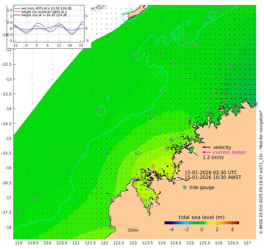 4cm/s -15T +10cm/s rms + 1cm/s 1T. NWSBRW 205m 6cm/s -31T +11cm/s rms + 6cm/s -110T. NWSROW 199m 8cm/s -5T +5cm/s rms + 2cm/s 65T. CAM050 58m 6cm/s -12T +12cm/s rms + 5cm/s 92T. CAM100 99m 1cm/s 20T +7cm/s rms + 1cm/s -85T. KIM400 396m 3cm/s -13T +9cm/s rms + 5cm/s -119T. KIM200 208m 5cm/s -9T +11cm/s rms + 5cm/s -147T. KIM100 99m 7cm/s -16T +8cm/s rms + 3cm/s -103T. KIM050 59m 16cm/s 85T +4cm/s rms + 2cm/s 23T. TIMORS88 91m 11cm Imperieuse Reef 8cm Mermaid Reef 35cm Broome 31cm Cape Baskerville 60cm Red Bluff 21cm Cape Boileau 9cm Scott Reef (WA) 7cm Ashmore Reef 62cm Karrakatta Bay 68cm Sunday Island 92cm Valentine Island 66cm Derby 68cm Port Usborne 76cm Bedford Islands 61cm Yampi Sound (Koolan Island) 92cm Macleay Island 50cm Adele Island -9cm Browse Island 75cm Shale Island 60cm Lizard Island 137cm Hall Point 45cm Degerando Island 30cm White Island 11cm Skua No. 4 Well 31cm Jabiru 23cm Maret Island 11cm Baudin Island 3cm Cape Voltaire (Krait Bay) 5cm Dillon Shoal 9cm Laminaria 10cm Port Warrender -21cm Troughton Island 3cm Cassini Island -5cm West Holothuria Reef Offshore -30cm Jar Island 18cm Lynher Bank 16cm Heywood Shoal 10cm Pee Shoal -24cm Van Cloon Shoal -48cm Carronade Island -43cm Guy Point -53cm Napier Broome Bay -93cm Lesueur Island