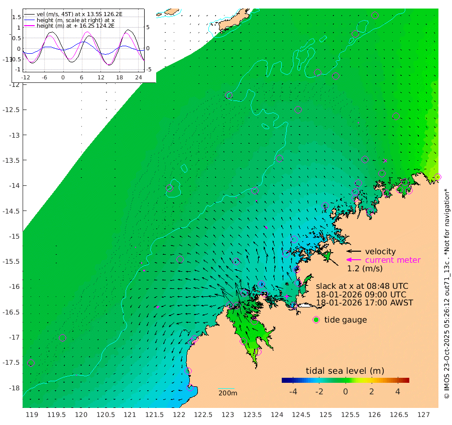 6cm/s 173T +10cm/s rms + 1cm/s 1T. NWSBRW 205m 4cm/s -94T +11cm/s rms + 6cm/s -110T. NWSROW 199m 22cm/s -39T +5cm/s rms + 2cm/s 65T. CAM050 58m 13cm/s -56T +12cm/s rms + 5cm/s 92T. CAM100 99m 4cm/s -108T +7cm/s rms + 1cm/s -85T. KIM400 396m 8cm/s -97T +9cm/s rms + 5cm/s -119T. KIM200 208m 13cm/s -99T +11cm/s rms + 5cm/s -147T. KIM100 99m 23cm/s -126T +8cm/s rms + 3cm/s -103T. KIM050 59m 5cm/s 119T +4cm/s rms + 2cm/s 23T. TIMORS88 91m -37cm Imperieuse Reef -58cm Mermaid Reef -196cm Broome -138cm Cape Baskerville -164cm Red Bluff -137cm Cape Boileau -53cm Scott Reef (WA) -61cm Ashmore Reef -149cm Karrakatta Bay -113cm Sunday Island 19cm Valentine Island 83cm Derby -7cm Port Usborne -159cm Bedford Islands -202cm Yampi Sound (Koolan Island) -255cm Macleay Island -158cm Adele Island -102cm Browse Island -232cm Shale Island -194cm Lizard Island -318cm Hall Point -184cm Degerando Island -178cm White Island -66cm Skua No. 4 Well -58cm Jabiru -150cm Maret Island -137cm Baudin Island -124cm Cape Voltaire (Krait Bay) -37cm Dillon Shoal -10cm Laminaria -133cm Port Warrender -58cm Troughton Island -119cm Cassini Island -77cm West Holothuria Reef Offshore -59cm Jar Island -86cm Lynher Bank -99cm Heywood Shoal -43cm Pee Shoal -14cm Van Cloon Shoal -16cm Carronade Island -14cm Guy Point -15cm Napier Broome Bay 77cm Lesueur Island