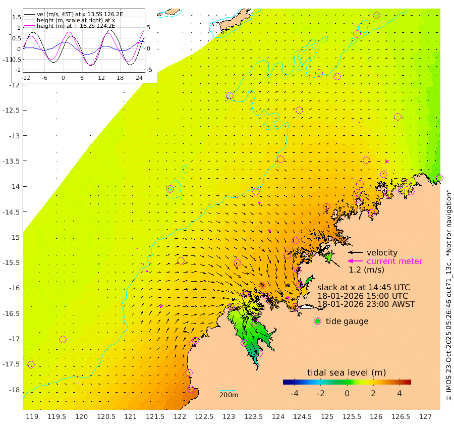 8cm/s 9T +10cm/s rms + 1cm/s 1T. NWSBRW 205m 8cm/s 52T +11cm/s rms + 6cm/s -110T. NWSROW 199m 24cm/s 136T +5cm/s rms + 2cm/s 65T. CAM050 58m 18cm/s 115T +12cm/s rms + 5cm/s 92T. CAM100 99m 6cm/s 68T +7cm/s rms + 1cm/s -85T. KIM400 396m 10cm/s 80T +9cm/s rms + 5cm/s -119T. KIM200 208m 16cm/s 76T +11cm/s rms + 5cm/s -147T. KIM100 99m 32cm/s 52T +8cm/s rms + 3cm/s -103T. KIM050 59m 6cm/s 1T +4cm/s rms + 2cm/s 23T. TIMORS88 91m 99cm Imperieuse Reef 122cm Mermaid Reef 271cm Broome 212cm Cape Baskerville 235cm Red Bluff 216cm Cape Boileau 116cm Scott Reef (WA) 143cm Ashmore Reef 222cm Karrakatta Bay 182cm Sunday Island 50cm Valentine Island -42cm Derby 54cm Port Usborne 229cm Bedford Islands 282cm Yampi Sound (Koolan Island) 328cm Macleay Island 233cm Adele Island 151cm Browse Island 313cm Shale Island 299cm Lizard Island 386cm Hall Point 263cm Degerando Island 259cm White Island 150cm Skua No. 4 Well 141cm Jabiru 242cm Maret Island 229cm Baudin Island 219cm Cape Voltaire (Krait Bay) 118cm Dillon Shoal 88cm Laminaria 244cm Port Warrender 181cm Troughton Island 221cm Cassini Island 176cm West Holothuria Reef Offshore 167cm Jar Island 157cm Lynher Bank 189cm Heywood Shoal 137cm Pee Shoal 120cm Van Cloon Shoal 129cm Carronade Island 132cm Guy Point 139cm Napier Broome Bay 63cm Lesueur Island