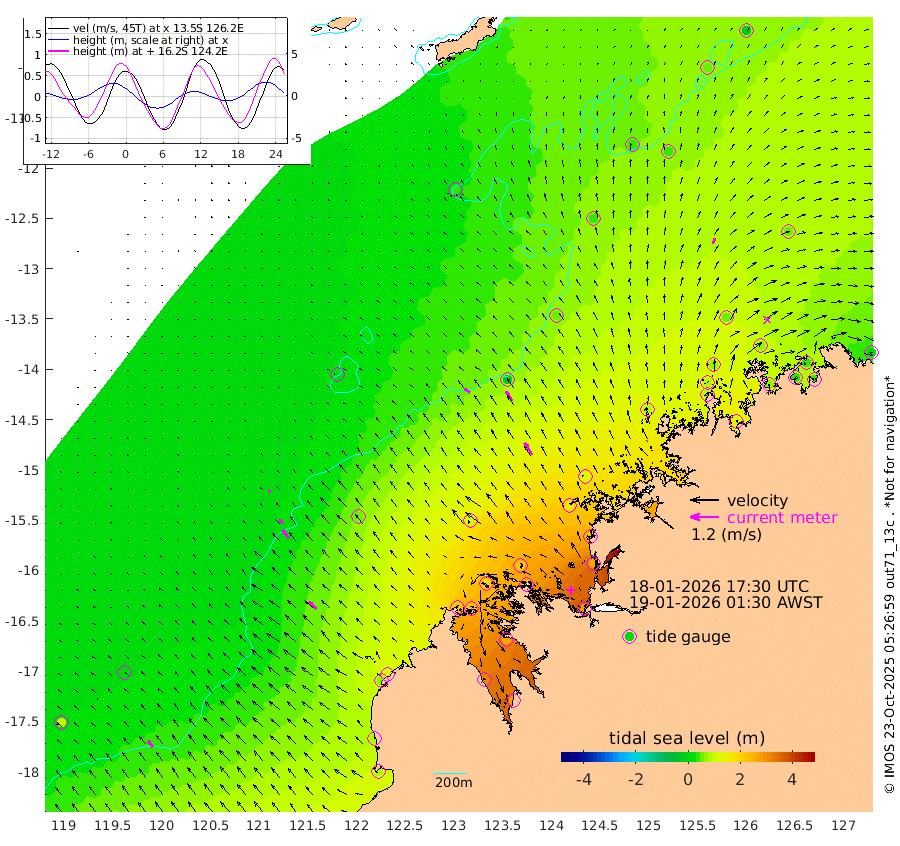28cm/s -53T +10cm/s rms + 1cm/s 1T. NWSBRW 205m 34cm/s -37T +11cm/s rms + 6cm/s -110T. NWSROW 199m 59cm/s -33T +5cm/s rms + 2cm/s 65T. CAM050 58m 47cm/s -32T +12cm/s rms + 5cm/s 92T. CAM100 99m 11cm/s -47T +7cm/s rms + 1cm/s -85T. KIM400 396m 23cm/s -45T +9cm/s rms + 5cm/s -119T. KIM200 208m 42cm/s -39T +11cm/s rms + 5cm/s -147T. KIM100 99m 45cm/s -44T +8cm/s rms + 3cm/s -103T. KIM050 59m 25cm/s 24T +4cm/s rms + 2cm/s 23T. TIMORS88 91m 98cm Imperieuse Reef 8cm Mermaid Reef 89cm Broome 65cm Cape Baskerville 128cm Red Bluff 78cm Cape Boileau 10cm Scott Reef (WA) 43cm Ashmore Reef 211cm Karrakatta Bay 214cm Sunday Island 301cm Valentine Island 276cm Derby 266cm Port Usborne 184cm Bedford Islands 212cm Yampi Sound (Koolan Island) 212cm Macleay Island 113cm Adele Island -17cm Browse Island 287cm Shale Island 259cm Lizard Island 230cm Hall Point 160cm Degerando Island 127cm White Island 34cm Skua No. 4 Well 38cm Jabiru 80cm Maret Island 82cm Baudin Island 76cm Cape Voltaire (Krait Bay) 57cm Dillon Shoal -21cm Laminaria 123cm Port Warrender 73cm Troughton Island 71cm Cassini Island 55cm West Holothuria Reef Offshore 73cm Jar Island 51cm Lynher Bank 46cm Heywood Shoal 45cm Pee Shoal 52cm Van Cloon Shoal 38cm Carronade Island 35cm Guy Point 42cm Napier Broome Bay 14cm Lesueur Island