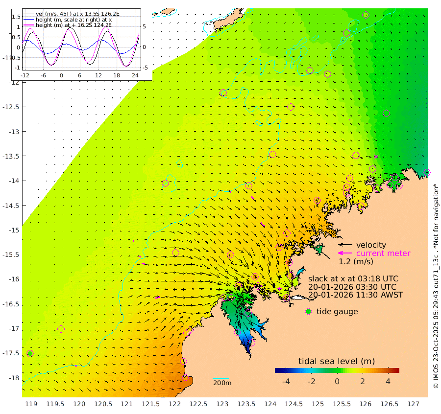 8cm/s 79T +10cm/s rms + 1cm/s 1T. NWSBRW 205m 15cm/s 110T +11cm/s rms + 6cm/s -110T. NWSROW 199m 52cm/s 140T +5cm/s rms + 2cm/s 65T. CAM050 58m 37cm/s 132T +12cm/s rms + 5cm/s 92T. CAM100 99m 10cm/s 93T +7cm/s rms + 1cm/s -85T. KIM400 396m 20cm/s 101T +9cm/s rms + 5cm/s -119T. KIM200 208m 32cm/s 105T +11cm/s rms + 5cm/s -147T. KIM100 99m 43cm/s 76T +8cm/s rms + 3cm/s -103T. KIM050 59m 8cm/s 110T +4cm/s rms + 2cm/s 23T. TIMORS88 91m 40cm Imperieuse Reef 113cm Mermaid Reef 285cm Broome 204cm Cape Baskerville 222cm Red Bluff 185cm Cape Boileau 100cm Scott Reef (WA) 104cm Ashmore Reef 163cm Karrakatta Bay 115cm Sunday Island -138cm Valentine Island -227cm Derby -75cm Port Usborne 209cm Bedford Islands 252cm Yampi Sound (Koolan Island) 302cm Macleay Island 213cm Adele Island 154cm Browse Island 275cm Shale Island 233cm Lizard Island 356cm Hall Point 244cm Degerando Island 237cm White Island 114cm Skua No. 4 Well 93cm Jabiru 217cm Maret Island 192cm Baudin Island 182cm Cape Voltaire (Krait Bay) 55cm Dillon Shoal 71cm Laminaria 171cm Port Warrender 82cm Troughton Island 176cm Cassini Island 114cm West Holothuria Reef Offshore 79cm Jar Island 142cm Lynher Bank 165cm Heywood Shoal 78cm Pee Shoal 22cm Van Cloon Shoal 25cm Carronade Island 24cm Guy Point 21cm Napier Broome Bay -97cm Lesueur Island