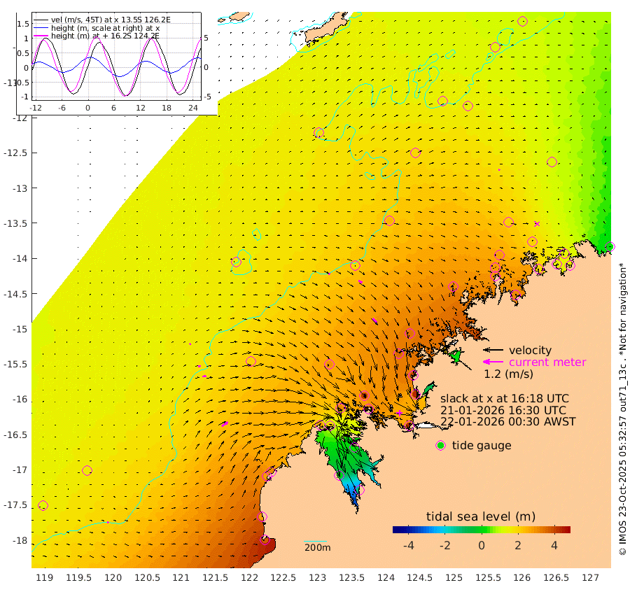 8cm/s 3T +10cm/s rms + 1cm/s 1T. NWSBRW 205m 11cm/s 61T +11cm/s rms + 6cm/s -110T. NWSROW 199m 36cm/s 136T +5cm/s rms + 2cm/s 65T. CAM050 58m 25cm/s 119T +12cm/s rms + 5cm/s 92T. CAM100 99m 8cm/s 69T +7cm/s rms + 1cm/s -85T. KIM400 396m 14cm/s 82T +9cm/s rms + 5cm/s -119T. KIM200 208m 23cm/s 81T +11cm/s rms + 5cm/s -147T. KIM100 99m 44cm/s 56T +8cm/s rms + 3cm/s -103T. KIM050 59m 9cm/s 25T +4cm/s rms + 2cm/s 23T. TIMORS88 91m 121cm Imperieuse Reef 158cm Mermaid Reef 371cm Broome 276cm Cape Baskerville 307cm Red Bluff 284cm Cape Boileau 149cm Scott Reef (WA) 172cm Ashmore Reef 274cm Karrakatta Bay 220cm Sunday Island -12cm Valentine Island -134cm Derby 26cm Port Usborne 306cm Bedford Islands 373cm Yampi Sound (Koolan Island) 406cm Macleay Island 291cm Adele Island 193cm Browse Island 420cm Shale Island 424cm Lizard Island 403cm Hall Point 354cm Degerando Island 338cm White Island 187cm Skua No. 4 Well 143cm Jabiru 310cm Maret Island 279cm Baudin Island 287cm Cape Voltaire (Krait Bay) 128cm Dillon Shoal 106cm Laminaria 304cm Port Warrender 202cm Troughton Island 276cm Cassini Island 203cm West Holothuria Reef Offshore 193cm Jar Island 209cm Lynher Bank 254cm Heywood Shoal 160cm Pee Shoal 125cm Van Cloon Shoal 138cm Carronade Island 140cm Guy Point 153cm Napier Broome Bay 26cm Lesueur Island