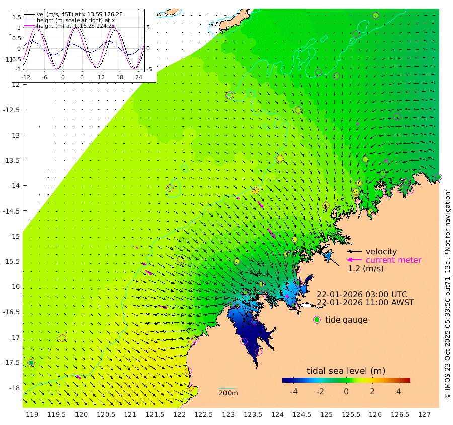 27cm/s 120T +10cm/s rms + 1cm/s 1T. NWSBRW 205m 41cm/s 137T +11cm/s rms + 6cm/s -110T. NWSROW 199m 99cm/s 142T +5cm/s rms + 2cm/s 65T. CAM050 58m 69cm/s 141T +12cm/s rms + 5cm/s 92T. CAM100 99m 15cm/s 117T +7cm/s rms + 1cm/s -85T. KIM400 396m 33cm/s 117T +9cm/s rms + 5cm/s -119T. KIM200 208m 60cm/s 124T +11cm/s rms + 5cm/s -147T. KIM100 99m 65cm/s 105T +8cm/s rms + 3cm/s -103T. KIM050 59m 23cm/s -142T +4cm/s rms + 2cm/s 23T. TIMORS88 91m -46cm Imperieuse Reef 88cm Mermaid Reef 182cm Broome 140cm Cape Baskerville 81cm Red Bluff 119cm Cape Boileau 78cm Scott Reef (WA) 51cm Ashmore Reef -40cm Karrakatta Bay -91cm Sunday Island -388cm Valentine Island -464cm Derby -318cm Port Usborne 31cm Bedford Islands 37cm Yampi Sound (Koolan Island) 73cm Macleay Island 85cm Adele Island 169cm Browse Island -16cm Shale Island -45cm Lizard Island 112cm Hall Point 91cm Degerando Island 110cm White Island 68cm Skua No. 4 Well 43cm Jabiru 133cm Maret Island 123cm Baudin Island 112cm Cape Voltaire (Krait Bay) -1cm Dillon Shoal 55cm Laminaria 83cm Port Warrender 42cm Troughton Island 110cm Cassini Island 68cm West Holothuria Reef Offshore 38cm Jar Island 83cm Lynher Bank 105cm Heywood Shoal 29cm Pee Shoal -4cm Van Cloon Shoal 28cm Carronade Island 31cm Guy Point 22cm Napier Broome Bay -31cm Lesueur Island