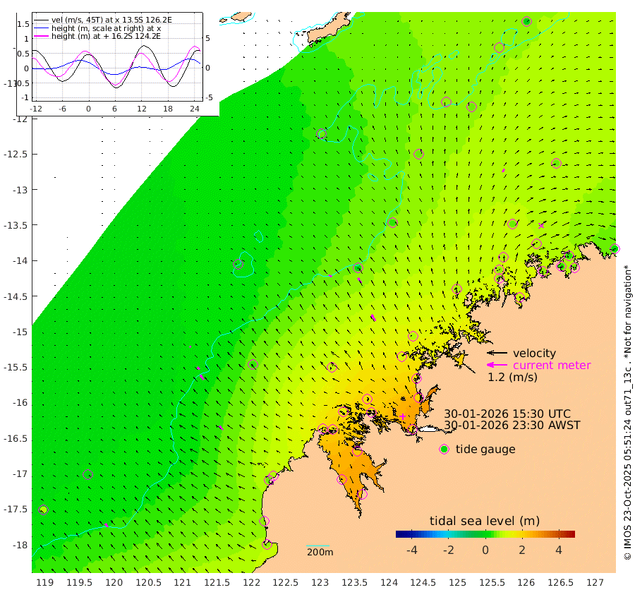 21cm/s -51T +10cm/s rms + 1cm/s 1T. NWSBRW 205m 26cm/s -36T +11cm/s rms + 6cm/s -110T. NWSROW 199m 43cm/s -33T +5cm/s rms + 2cm/s 65T. CAM050 58m 34cm/s -33T +12cm/s rms + 5cm/s 92T. CAM100 99m 9cm/s -48T +7cm/s rms + 1cm/s -85T. KIM400 396m 18cm/s -46T +9cm/s rms + 5cm/s -119T. KIM200 208m 32cm/s -38T +11cm/s rms + 5cm/s -147T. KIM100 99m 33cm/s -47T +8cm/s rms + 3cm/s -103T. KIM050 59m 19cm/s 22T +4cm/s rms + 2cm/s 23T. TIMORS88 91m 87cm Imperieuse Reef 11cm Mermaid Reef 66cm Broome 51cm Cape Baskerville 89cm Red Bluff 63cm Cape Boileau 18cm Scott Reef (WA) 51cm Ashmore Reef 163cm Karrakatta Bay 151cm Sunday Island 247cm Valentine Island 233cm Derby 219cm Port Usborne 138cm Bedford Islands 148cm Yampi Sound (Koolan Island) 174cm Macleay Island 96cm Adele Island 3cm Browse Island 204cm Shale Island 184cm Lizard Island 168cm Hall Point 120cm Degerando Island 79cm White Island 52cm Skua No. 4 Well 55cm Jabiru 78cm Maret Island 63cm Baudin Island 70cm Cape Voltaire (Krait Bay) 62cm Dillon Shoal -4cm Laminaria 94cm Port Warrender 84cm Troughton Island 80cm Cassini Island 55cm West Holothuria Reef Offshore 66cm Jar Island 37cm Lynher Bank 45cm Heywood Shoal 64cm Pee Shoal 59cm Van Cloon Shoal 43cm Carronade Island 38cm Guy Point 50cm Napier Broome Bay 28cm Lesueur Island