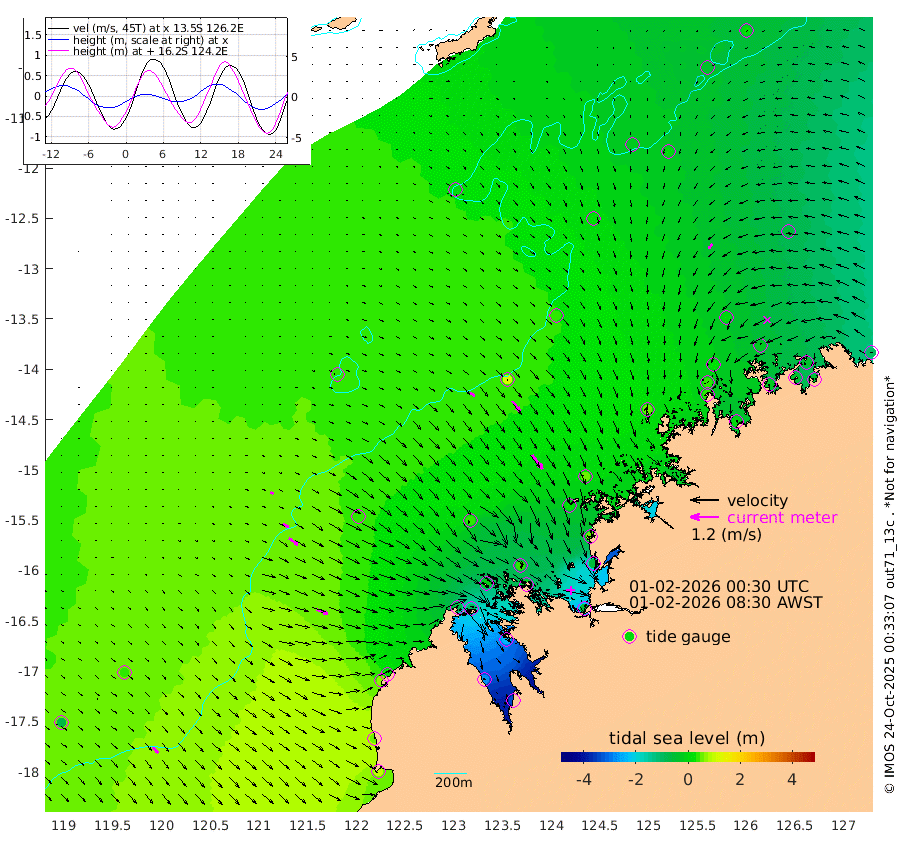 24cm/s 124T +10cm/s rms + 1cm/s 1T. NWSBRW 205m 33cm/s 138T +11cm/s rms + 6cm/s -110T. NWSROW 199m 74cm/s 144T +5cm/s rms + 2cm/s 65T. CAM050 58m 53cm/s 143T +12cm/s rms + 5cm/s 92T. CAM100 99m 13cm/s 119T +7cm/s rms + 1cm/s -85T. KIM400 396m 27cm/s 121T +9cm/s rms + 5cm/s -119T. KIM200 208m 47cm/s 127T +11cm/s rms + 5cm/s -147T. KIM100 99m 49cm/s 111T +8cm/s rms + 3cm/s -103T. KIM050 59m 26cm/s -138T +4cm/s rms + 2cm/s 23T. TIMORS88 91m -66cm Imperieuse Reef 43cm Mermaid Reef 95cm Broome 67cm Cape Baskerville 15cm Red Bluff 49cm Cape Boileau 38cm Scott Reef (WA) 2cm Ashmore Reef -69cm Karrakatta Bay -94cm Sunday Island -277cm Valentine Island -334cm Derby -238cm Port Usborne -14cm Bedford Islands -12cm Yampi Sound (Koolan Island) 40cm Macleay Island 36cm Adele Island 111cm Browse Island -59cm Shale Island -46cm Lizard Island 51cm Hall Point 18cm Degerando Island 49cm White Island 17cm Skua No. 4 Well 2cm Jabiru 55cm Maret Island 42cm Baudin Island 33cm Cape Voltaire (Krait Bay) -41cm Dillon Shoal 19cm Laminaria 9cm Port Warrender -27cm Troughton Island 24cm Cassini Island 7cm West Holothuria Reef Offshore -27cm Jar Island 38cm Lynher Bank 34cm Heywood Shoal -16cm Pee Shoal -52cm Van Cloon Shoal -34cm Carronade Island -30cm Guy Point -43cm Napier Broome Bay -93cm Lesueur Island