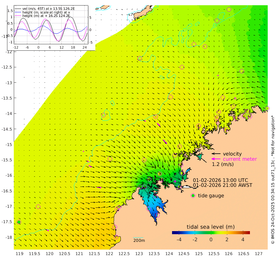 23cm/s 116T +10cm/s rms + 1cm/s 1T. NWSBRW 205m 30cm/s 130T +11cm/s rms + 6cm/s -110T. NWSROW 199m 76cm/s 138T +5cm/s rms + 2cm/s 65T. CAM050 58m 55cm/s 133T +12cm/s rms + 5cm/s 92T. CAM100 99m 13cm/s 108T +7cm/s rms + 1cm/s -85T. KIM400 396m 27cm/s 116T +9cm/s rms + 5cm/s -119T. KIM200 208m 45cm/s 120T +11cm/s rms + 5cm/s -147T. KIM100 99m 55cm/s 96T +8cm/s rms + 3cm/s -103T. KIM050 59m 17cm/s -130T +4cm/s rms + 2cm/s 23T. TIMORS88 91m 26cm Imperieuse Reef 131cm Mermaid Reef 211cm Broome 168cm Cape Baskerville 115cm Red Bluff 176cm Cape Boileau 127cm Scott Reef (WA) 116cm Ashmore Reef 41cm Karrakatta Bay 25cm Sunday Island -210cm Valentine Island -268cm Derby -162cm Port Usborne 88cm Bedford Islands 117cm Yampi Sound (Koolan Island) 166cm Macleay Island 151cm Adele Island 183cm Browse Island 75cm Shale Island 105cm Lizard Island 169cm Hall Point 147cm Degerando Island 176cm White Island 132cm Skua No. 4 Well 119cm Jabiru 188cm Maret Island 171cm Baudin Island 178cm Cape Voltaire (Krait Bay) 89cm Dillon Shoal 119cm Laminaria 176cm Port Warrender 142cm Troughton Island 171cm Cassini Island 150cm West Holothuria Reef Offshore 129cm Jar Island 141cm Lynher Bank 173cm Heywood Shoal 113cm Pee Shoal 101cm Van Cloon Shoal 133cm Carronade Island 145cm Guy Point 146cm Napier Broome Bay 94cm Lesueur Island