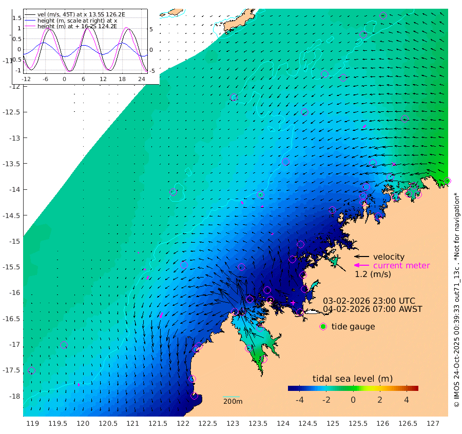 24cm/s 152T +10cm/s rms + 1cm/s 1T. NWSBRW 205m 21cm/s 172T +11cm/s rms + 6cm/s -110T. NWSROW 199m 17cm/s -127T +5cm/s rms + 2cm/s 65T. CAM050 58m 19cm/s -142T +12cm/s rms + 5cm/s 92T. CAM100 99m 8cm/s -142T +7cm/s rms + 1cm/s -85T. KIM400 396m 13cm/s -155T +9cm/s rms + 5cm/s -119T. KIM200 208m 27cm/s -161T +11cm/s rms + 5cm/s -147T. KIM100 99m 45cm/s -157T +8cm/s rms + 3cm/s -103T. KIM050 59m 28cm/s -131T +4cm/s rms + 2cm/s 23T. TIMORS88 91m -169cm Imperieuse Reef -162cm Mermaid Reef -392cm Broome -289cm Cape Baskerville -352cm Red Bluff -291cm Cape Boileau -152cm Scott Reef (WA) -186cm Ashmore Reef -376cm Karrakatta Bay -356cm Sunday Island -182cm Valentine Island -65cm Derby -209cm Port Usborne -424cm Bedford Islands -477cm Yampi Sound (Koolan Island) -505cm Macleay Island -343cm Adele Island -152cm Browse Island -560cm Shale Island -559cm Lizard Island -440cm Hall Point -422cm Degerando Island -382cm White Island -192cm Skua No. 4 Well -155cm Jabiru -327cm Maret Island -292cm Baudin Island -295cm Cape Voltaire (Krait Bay) -142cm Dillon Shoal -114cm Laminaria -331cm Port Warrender -204cm Troughton Island -278cm Cassini Island -206cm West Holothuria Reef Offshore -192cm Jar Island -241cm Lynher Bank -255cm Heywood Shoal -175cm Pee Shoal -128cm Van Cloon Shoal -119cm Carronade Island -119cm Guy Point -130cm Napier Broome Bay 1cm Lesueur Island