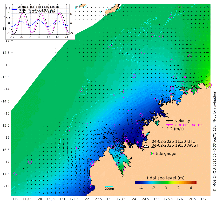28cm/s 145T +10cm/s rms + 1cm/s 1T. NWSBRW 205m 23cm/s 163T +11cm/s rms + 6cm/s -110T. NWSROW 199m 18cm/s 176T +5cm/s rms + 2cm/s 65T. CAM050 58m 22cm/s 176T +12cm/s rms + 5cm/s 92T. CAM100 99m 7cm/s -172T +7cm/s rms + 1cm/s -85T. KIM400 396m 13cm/s -169T +9cm/s rms + 5cm/s -119T. KIM200 208m 26cm/s -173T +11cm/s rms + 5cm/s -147T. KIM100 99m 41cm/s -176T +8cm/s rms + 3cm/s -103T. KIM050 59m 24cm/s -137T +4cm/s rms + 2cm/s 23T. TIMORS88 91m -141cm Imperieuse Reef -112cm Mermaid Reef -334cm Broome -234cm Cape Baskerville -286cm Red Bluff -231cm Cape Boileau -105cm Scott Reef (WA) -128cm Ashmore Reef -339cm Karrakatta Bay -320cm Sunday Island -194cm Valentine Island -99cm Derby -227cm Port Usborne -381cm Bedford Islands -435cm Yampi Sound (Koolan Island) -464cm Macleay Island -288cm Adele Island -109cm Browse Island -529cm Shale Island -496cm Lizard Island -370cm Hall Point -372cm Degerando Island -329cm White Island -137cm Skua No. 4 Well -96cm Jabiru -261cm Maret Island -227cm Baudin Island -235cm Cape Voltaire (Krait Bay) -100cm Dillon Shoal -51cm Laminaria -265cm Port Warrender -137cm Troughton Island -211cm Cassini Island -140cm West Holothuria Reef Offshore -132cm Jar Island -187cm Lynher Bank -197cm Heywood Shoal -112cm Pee Shoal -61cm Van Cloon Shoal -52cm Carronade Island -54cm Guy Point -48cm Napier Broome Bay 77cm Lesueur Island