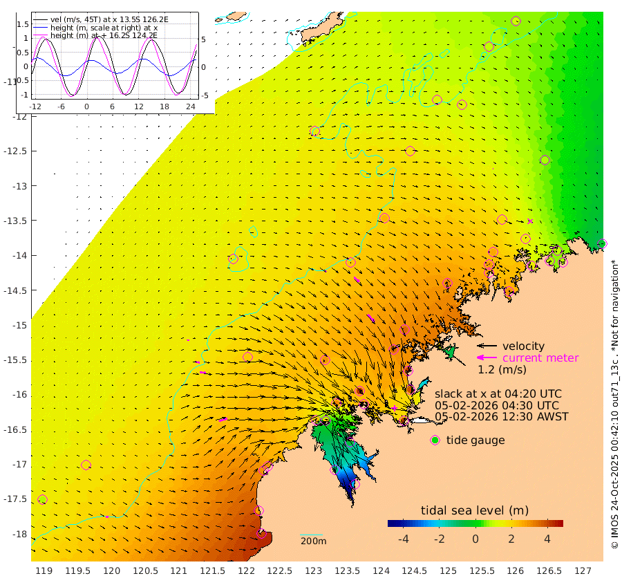 9cm/s 73T +10cm/s rms + 1cm/s 1T. NWSBRW 205m 17cm/s 100T +11cm/s rms + 6cm/s -110T. NWSROW 199m 59cm/s 138T +5cm/s rms + 2cm/s 65T. CAM050 58m 41cm/s 129T +12cm/s rms + 5cm/s 92T. CAM100 99m 11cm/s 87T +7cm/s rms + 1cm/s -85T. KIM400 396m 24cm/s 96T +9cm/s rms + 5cm/s -119T. KIM200 208m 38cm/s 99T +11cm/s rms + 5cm/s -147T. KIM100 99m 54cm/s 69T +8cm/s rms + 3cm/s -103T. KIM050 59m 5cm/s 81T +4cm/s rms + 2cm/s 23T. TIMORS88 91m 82cm Imperieuse Reef 167cm Mermaid Reef 394cm Broome 288cm Cape Baskerville 295cm Red Bluff 271cm Cape Boileau 151cm Scott Reef (WA) 155cm Ashmore Reef 226cm Karrakatta Bay 186cm Sunday Island -119cm Valentine Island -253cm Derby -58cm Port Usborne 309cm Bedford Islands 369cm Yampi Sound (Koolan Island) 409cm Macleay Island 297cm Adele Island 214cm Browse Island 395cm Shale Island 380cm Lizard Island 411cm Hall Point 357cm Degerando Island 353cm White Island 167cm Skua No. 4 Well 126cm Jabiru 311cm Maret Island 278cm Baudin Island 281cm Cape Voltaire (Krait Bay) 94cm Dillon Shoal 107cm Laminaria 296cm Port Warrender 165cm Troughton Island 260cm Cassini Island 187cm West Holothuria Reef Offshore 158cm Jar Island 222cm Lynher Bank 245cm Heywood Shoal 130cm Pee Shoal 77cm Van Cloon Shoal 100cm Carronade Island 103cm Guy Point 96cm Napier Broome Bay -32cm Lesueur Island