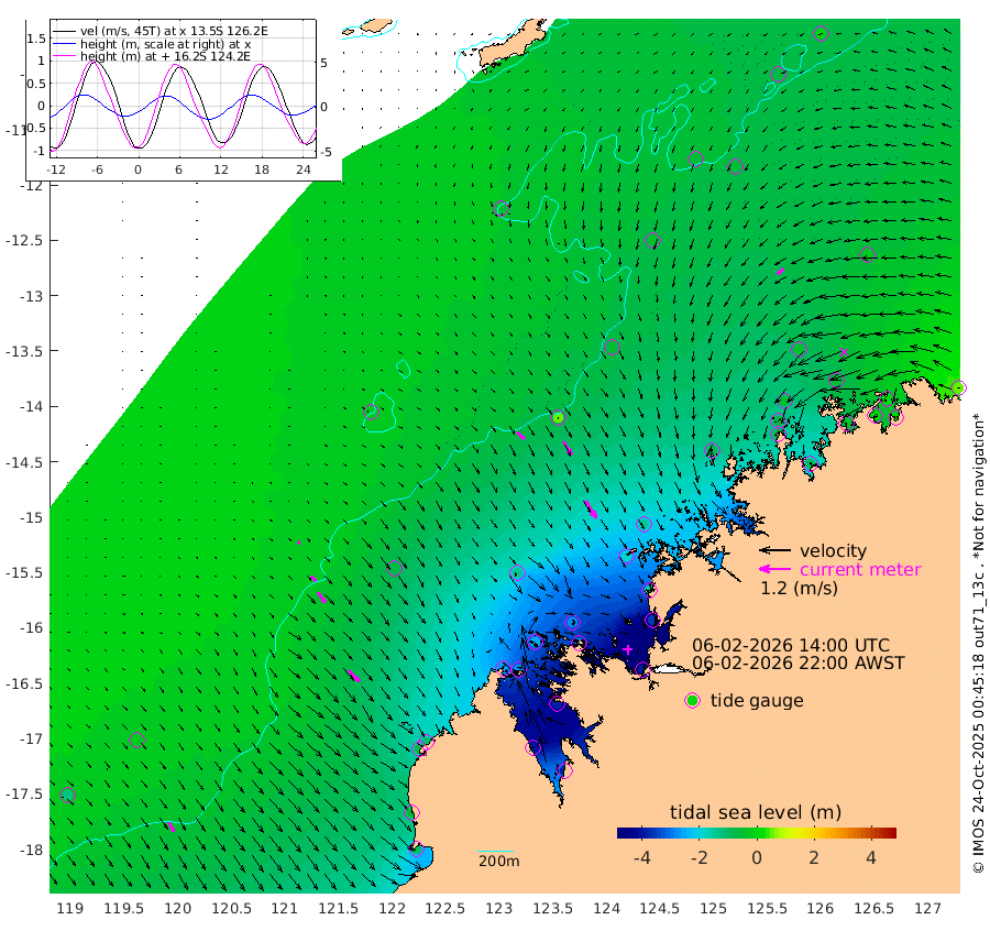 38cm/s 132T +10cm/s rms + 1cm/s 1T. NWSBRW 205m 42cm/s 146T +11cm/s rms + 6cm/s -110T. NWSROW 199m 80cm/s 148T +5cm/s rms + 2cm/s 65T. CAM050 58m 62cm/s 149T +12cm/s rms + 5cm/s 92T. CAM100 99m 12cm/s 141T +7cm/s rms + 1cm/s -85T. KIM400 396m 24cm/s 137T +9cm/s rms + 5cm/s -119T. KIM200 208m 49cm/s 144T +11cm/s rms + 5cm/s -147T. KIM100 99m 59cm/s 133T +8cm/s rms + 3cm/s -103T. KIM050 59m 33cm/s -132T +4cm/s rms + 2cm/s 23T. TIMORS88 91m -123cm Imperieuse Reef -19cm Mermaid Reef -103cm Broome -62cm Cape Baskerville -118cm Red Bluff -59cm Cape Boileau -19cm Scott Reef (WA) -48cm Ashmore Reef -259cm Karrakatta Bay -284cm Sunday Island -393cm Valentine Island -389cm Derby -383cm Port Usborne -251cm Bedford Islands -274cm Yampi Sound (Koolan Island) -270cm Macleay Island -135cm Adele Island 48cm Browse Island -378cm Shale Island -352cm Lizard Island -152cm Hall Point -187cm Degerando Island -145cm White Island -43cm Skua No. 4 Well -45cm Jabiru -79cm Maret Island -68cm Baudin Island -72cm Cape Voltaire (Krait Bay) -62cm Dillon Shoal -6cm Laminaria -100cm Port Warrender -48cm Troughton Island -55cm Cassini Island -34cm West Holothuria Reef Offshore -45cm Jar Island -73cm Lynher Bank -54cm Heywood Shoal -46cm Pee Shoal -21cm Van Cloon Shoal 11cm Carronade Island 9cm Guy Point 20cm Napier Broome Bay 56cm Lesueur Island
