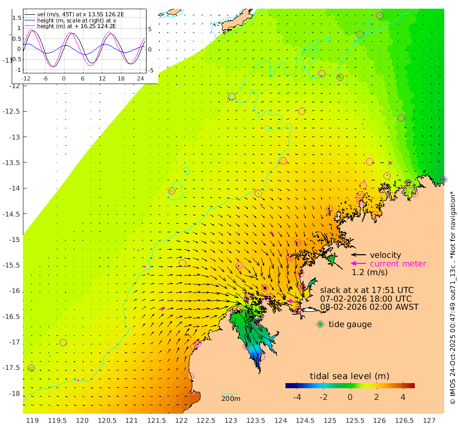 6cm/s -11T +10cm/s rms + 1cm/s 1T. NWSBRW 205m 9cm/s 54T +11cm/s rms + 6cm/s -110T. NWSROW 199m 28cm/s 142T +5cm/s rms + 2cm/s 65T. CAM050 58m 18cm/s 126T +12cm/s rms + 5cm/s 92T. CAM100 99m 7cm/s 71T +7cm/s rms + 1cm/s -85T. KIM400 396m 11cm/s 82T +9cm/s rms + 5cm/s -119T. KIM200 208m 17cm/s 83T +11cm/s rms + 5cm/s -147T. KIM100 99m 36cm/s 54T +8cm/s rms + 3cm/s -103T. KIM050 59m 5cm/s -30T +4cm/s rms + 2cm/s 23T. TIMORS88 91m 73cm Imperieuse Reef 113cm Mermaid Reef 307cm Broome 220cm Cape Baskerville 267cm Red Bluff 223cm Cape Boileau 98cm Scott Reef (WA) 107cm Ashmore Reef 213cm Karrakatta Bay 174cm Sunday Island -53cm Valentine Island -172cm Derby -22cm Port Usborne 249cm Bedford Islands 316cm Yampi Sound (Koolan Island) 319cm Macleay Island 224cm Adele Island 144cm Browse Island 357cm Shale Island 362cm Lizard Island 310cm Hall Point 290cm Degerando Island 291cm White Island 111cm Skua No. 4 Well 52cm Jabiru 233cm Maret Island 218cm Baudin Island 213cm Cape Voltaire (Krait Bay) 59cm Dillon Shoal 50cm Laminaria 239cm Port Warrender 113cm Troughton Island 190cm Cassini Island 136cm West Holothuria Reef Offshore 128cm Jar Island 162cm Lynher Bank 182cm Heywood Shoal 81cm Pee Shoal 57cm Van Cloon Shoal 73cm Carronade Island 73cm Guy Point 79cm Napier Broome Bay -39cm Lesueur Island