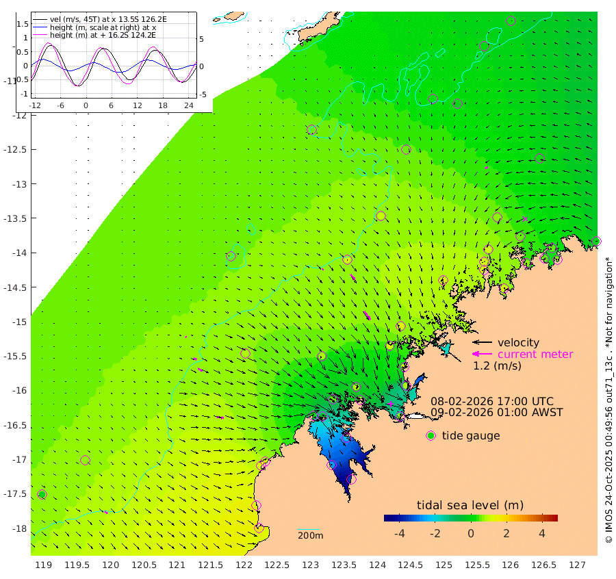 12cm/s 122T +10cm/s rms + 1cm/s 1T. NWSBRW 205m 22cm/s 130T +11cm/s rms + 6cm/s -110T. NWSROW 199m 63cm/s 145T +5cm/s rms + 2cm/s 65T. CAM050 58m 43cm/s 142T +12cm/s rms + 5cm/s 92T. CAM100 99m 9cm/s 111T +7cm/s rms + 1cm/s -85T. KIM400 396m 18cm/s 114T +9cm/s rms + 5cm/s -119T. KIM200 208m 33cm/s 122T +11cm/s rms + 5cm/s -147T. KIM100 99m 43cm/s 97T +8cm/s rms + 3cm/s -103T. KIM050 59m 17cm/s -118T +4cm/s rms + 2cm/s 23T. TIMORS88 91m -12cm Imperieuse Reef 67cm Mermaid Reef 176cm Broome 127cm Cape Baskerville 134cm Red Bluff 130cm Cape Boileau 56cm Scott Reef (WA) 48cm Ashmore Reef 17cm Karrakatta Bay -32cm Sunday Island -269cm Valentine Island -353cm Derby -230cm Port Usborne 51cm Bedford Islands 91cm Yampi Sound (Koolan Island) 85cm Macleay Island 88cm Adele Island 129cm Browse Island 71cm Shale Island 83cm Lizard Island 124cm Hall Point 120cm Degerando Island 136cm White Island 54cm Skua No. 4 Well -1cm Jabiru 130cm Maret Island 119cm Baudin Island 122cm Cape Voltaire (Krait Bay) 3cm Dillon Shoal 21cm Laminaria 122cm Port Warrender 53cm Troughton Island 112cm Cassini Island 75cm West Holothuria Reef Offshore 68cm Jar Island 76cm Lynher Bank 103cm Heywood Shoal 27cm Pee Shoal 22cm Van Cloon Shoal 54cm Carronade Island 49cm Guy Point 61cm Napier Broome Bay -10cm Lesueur Island