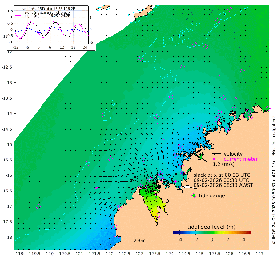 3cm/s 173T +10cm/s rms + 1cm/s 1T. NWSBRW 205m 7cm/s -134T +11cm/s rms + 6cm/s -110T. NWSROW 199m 21cm/s -46T +5cm/s rms + 2cm/s 65T. CAM050 58m 15cm/s -68T +12cm/s rms + 5cm/s 92T. CAM100 99m 5cm/s -117T +7cm/s rms + 1cm/s -85T. KIM400 396m 10cm/s -107T +9cm/s rms + 5cm/s -119T. KIM200 208m 15cm/s -112T +11cm/s rms + 5cm/s -147T. KIM100 99m 31cm/s -131T +8cm/s rms + 3cm/s -103T. KIM050 59m 8cm/s 128T +4cm/s rms + 2cm/s 23T. TIMORS88 91m -77cm Imperieuse Reef -104cm Mermaid Reef -257cm Broome -178cm Cape Baskerville -203cm Red Bluff -182cm Cape Boileau -90cm Scott Reef (WA) -107cm Ashmore Reef -171cm Karrakatta Bay -141cm Sunday Island 45cm Valentine Island 124cm Derby 2cm Port Usborne -198cm Bedford Islands -270cm Yampi Sound (Koolan Island) -261cm Macleay Island -190cm Adele Island -132cm Browse Island -304cm Shale Island -321cm Lizard Island -252cm Hall Point -248cm Degerando Island -253cm White Island -106cm Skua No. 4 Well -63cm Jabiru -208cm Maret Island -192cm Baudin Island -201cm Cape Voltaire (Krait Bay) -68cm Dillon Shoal -55cm Laminaria -223cm Port Warrender -134cm Troughton Island -183cm Cassini Island -138cm West Holothuria Reef Offshore -145cm Jar Island -145cm Lynher Bank -161cm Heywood Shoal -86cm Pee Shoal -80cm Van Cloon Shoal -107cm Carronade Island -102cm Guy Point -112cm Napier Broome Bay -37cm Lesueur Island