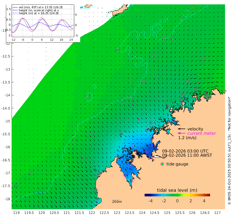 30cm/s 131T +10cm/s rms + 1cm/s 1T. NWSBRW 205m 32cm/s 148T +11cm/s rms + 6cm/s -110T. NWSROW 199m 59cm/s 145T +5cm/s rms + 2cm/s 65T. CAM050 58m 46cm/s 145T +12cm/s rms + 5cm/s 92T. CAM100 99m 8cm/s 141T +7cm/s rms + 1cm/s -85T. KIM400 396m 19cm/s 133T +9cm/s rms + 5cm/s -119T. KIM200 208m 39cm/s 141T +11cm/s rms + 5cm/s -147T. KIM100 99m 43cm/s 129T +8cm/s rms + 3cm/s -103T. KIM050 59m 15cm/s -174T +4cm/s rms + 2cm/s 23T. TIMORS88 91m -82cm Imperieuse Reef -6cm Mermaid Reef -65cm Broome -28cm Cape Baskerville -75cm Red Bluff -40cm Cape Boileau -6cm Scott Reef (WA) -26cm Ashmore Reef -171cm Karrakatta Bay -188cm Sunday Island -286cm Valentine Island -275cm Derby -268cm Port Usborne -152cm Bedford Islands -191cm Yampi Sound (Koolan Island) -192cm Macleay Island -90cm Adele Island 23cm Browse Island -263cm Shale Island -304cm Lizard Island -126cm Hall Point -122cm Degerando Island -110cm White Island -19cm Skua No. 4 Well -13cm Jabiru -53cm Maret Island -40cm Baudin Island -48cm Cape Voltaire (Krait Bay) -25cm Dillon Shoal 14cm Laminaria -78cm Port Warrender -33cm Troughton Island -30cm Cassini Island -24cm West Holothuria Reef Offshore -38cm Jar Island -48cm Lynher Bank -22cm Heywood Shoal -24cm Pee Shoal -18cm Van Cloon Shoal -4cm Carronade Island 2cm Guy Point -5cm Napier Broome Bay 32cm Lesueur Island