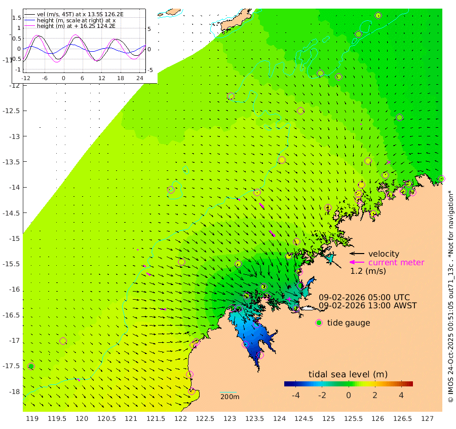 17cm/s 116T +10cm/s rms + 1cm/s 1T. NWSBRW 205m 25cm/s 132T +11cm/s rms + 6cm/s -110T. NWSROW 199m 67cm/s 139T +5cm/s rms + 2cm/s 65T. CAM050 58m 48cm/s 135T +12cm/s rms + 5cm/s 92T. CAM100 99m 9cm/s 109T +7cm/s rms + 1cm/s -85T. KIM400 396m 21cm/s 112T +9cm/s rms + 5cm/s -119T. KIM200 208m 40cm/s 120T +11cm/s rms + 5cm/s -147T. KIM100 99m 47cm/s 95T +8cm/s rms + 3cm/s -103T. KIM050 59m 8cm/s 179T +4cm/s rms + 2cm/s 23T. TIMORS88 91m 6cm Imperieuse Reef 95cm Mermaid Reef 183cm Broome 146cm Cape Baskerville 130cm Red Bluff 133cm Cape Boileau 81cm Scott Reef (WA) 81cm Ashmore Reef 27cm Karrakatta Bay -11cm Sunday Island -260cm Valentine Island -320cm Derby -209cm Port Usborne 68cm Bedford Islands 95cm Yampi Sound (Koolan Island) 84cm Macleay Island 103cm Adele Island 130cm Browse Island 69cm Shale Island 28cm Lizard Island 132cm Hall Point 128cm Degerando Island 141cm White Island 86cm Skua No. 4 Well 60cm Jabiru 145cm Maret Island 149cm Baudin Island 142cm Cape Voltaire (Krait Bay) 51cm Dillon Shoal 75cm Laminaria 134cm Port Warrender 95cm Troughton Island 142cm Cassini Island 109cm West Holothuria Reef Offshore 99cm Jar Island 97cm Lynher Bank 135cm Heywood Shoal 64cm Pee Shoal 59cm Van Cloon Shoal 89cm Carronade Island 93cm Guy Point 89cm Napier Broome Bay 57cm Lesueur Island