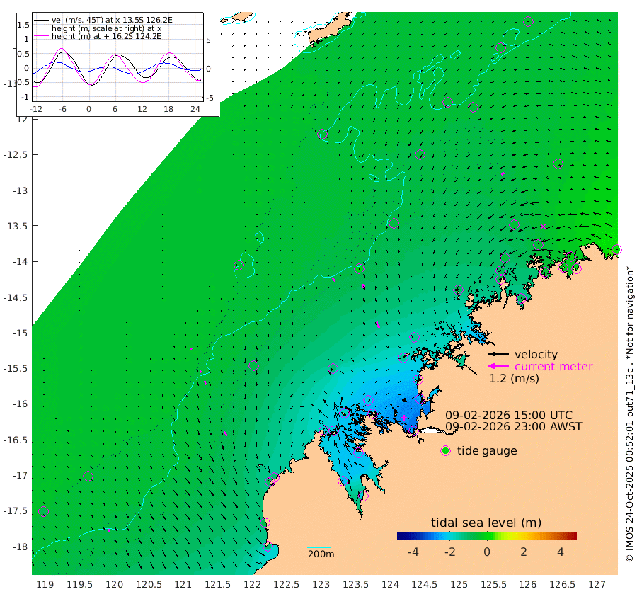 21cm/s 141T +10cm/s rms + 1cm/s 1T. NWSBRW 205m 21cm/s 151T +11cm/s rms + 6cm/s -110T. NWSROW 199m 37cm/s 156T +5cm/s rms + 2cm/s 65T. CAM050 58m 29cm/s 158T +12cm/s rms + 5cm/s 92T. CAM100 99m 5cm/s 167T +7cm/s rms + 1cm/s -85T. KIM400 396m 10cm/s 150T +9cm/s rms + 5cm/s -119T. KIM200 208m 22cm/s 155T +11cm/s rms + 5cm/s -147T. KIM100 99m 30cm/s 147T +8cm/s rms + 3cm/s -103T. KIM050 59m 20cm/s -121T +4cm/s rms + 2cm/s 23T. TIMORS88 91m -80cm Imperieuse Reef -42cm Mermaid Reef -106cm Broome -76cm Cape Baskerville -115cm Red Bluff -66cm Cape Boileau -36cm Scott Reef (WA) -53cm Ashmore Reef -185cm Karrakatta Bay -196cm Sunday Island -229cm Valentine Island -203cm Derby -216cm Port Usborne -175cm Bedford Islands -207cm Yampi Sound (Koolan Island) -208cm Macleay Island -118cm Adele Island 5cm Browse Island -269cm Shale Island -252cm Lizard Island -177cm Hall Point -142cm Degerando Island -137cm White Island -49cm Skua No. 4 Well -60cm Jabiru -81cm Maret Island -86cm Baudin Island -71cm Cape Voltaire (Krait Bay) -57cm Dillon Shoal -39cm Laminaria -92cm Port Warrender -50cm Troughton Island -60cm Cassini Island -53cm West Holothuria Reef Offshore -51cm Jar Island -74cm Lynher Bank -67cm Heywood Shoal -46cm Pee Shoal -28cm Van Cloon Shoal -10cm Carronade Island -16cm Guy Point -2cm Napier Broome Bay 27cm Lesueur Island