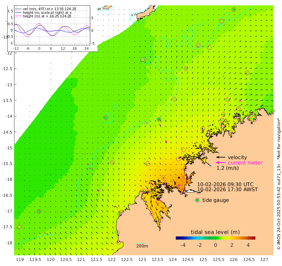 15cm/s -42T +10cm/s rms + 1cm/s 1T. NWSBRW 205m 21cm/s -31T +11cm/s rms + 6cm/s -110T. NWSROW 199m 38cm/s -27T +5cm/s rms + 2cm/s 65T. CAM050 58m 29cm/s -23T +12cm/s rms + 5cm/s 92T. CAM100 99m 5cm/s -23T +7cm/s rms + 1cm/s -85T. KIM400 396m 11cm/s -35T +9cm/s rms + 5cm/s -119T. KIM200 208m 24cm/s -30T +11cm/s rms + 5cm/s -147T. KIM100 99m 29cm/s -36T +8cm/s rms + 3cm/s -103T. KIM050 59m 13cm/s 26T +4cm/s rms + 2cm/s 23T. TIMORS88 91m 85cm Imperieuse Reef 42cm Mermaid Reef 83cm Broome 57cm Cape Baskerville 74cm Red Bluff 57cm Cape Boileau 39cm Scott Reef (WA) 63cm Ashmore Reef 156cm Karrakatta Bay 173cm Sunday Island 223cm Valentine Island 223cm Derby 218cm Port Usborne 137cm Bedford Islands 177cm Yampi Sound (Koolan Island) 182cm Macleay Island 105cm Adele Island 10cm Browse Island 228cm Shale Island 231cm Lizard Island 160cm Hall Point 122cm Degerando Island 123cm White Island 56cm Skua No. 4 Well 75cm Jabiru 81cm Maret Island 84cm Baudin Island 79cm Cape Voltaire (Krait Bay) 71cm Dillon Shoal 43cm Laminaria 102cm Port Warrender 86cm Troughton Island 72cm Cassini Island 72cm West Holothuria Reef Offshore 83cm Jar Island 71cm Lynher Bank 61cm Heywood Shoal 61cm Pee Shoal 64cm Van Cloon Shoal 60cm Carronade Island 61cm Guy Point 59cm Napier Broome Bay 55cm Lesueur Island