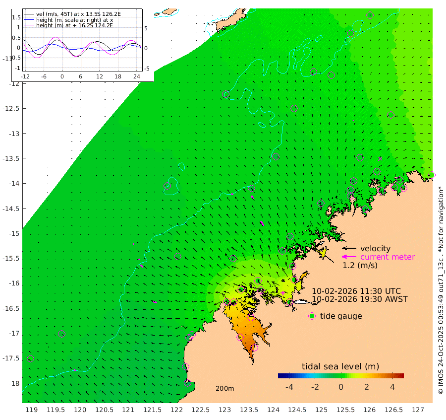 16cm/s -51T +10cm/s rms + 1cm/s 1T. NWSBRW 205m 18cm/s -43T +11cm/s rms + 6cm/s -110T. NWSROW 199m 46cm/s -34T +5cm/s rms + 2cm/s 65T. CAM050 58m 33cm/s -37T +12cm/s rms + 5cm/s 92T. CAM100 99m 6cm/s -62T +7cm/s rms + 1cm/s -85T. KIM400 396m 14cm/s -62T +9cm/s rms + 5cm/s -119T. KIM200 208m 27cm/s -51T +11cm/s rms + 5cm/s -147T. KIM100 99m 32cm/s -77T +8cm/s rms + 3cm/s -103T. KIM050 59m 9cm/s 5T +4cm/s rms + 2cm/s 23T. TIMORS88 91m 30cm Imperieuse Reef -30cm Mermaid Reef -87cm Broome -66cm Cape Baskerville -73cm Red Bluff -56cm Cape Boileau -20cm Scott Reef (WA) -9cm Ashmore Reef 22cm Karrakatta Bay 59cm Sunday Island 225cm Valentine Island 280cm Derby 198cm Port Usborne -8cm Bedford Islands -16cm Yampi Sound (Koolan Island) 10cm Macleay Island -20cm Adele Island -57cm Browse Island 2cm Shale Island 17cm Lizard Island -3cm Hall Point -43cm Degerando Island -47cm White Island -15cm Skua No. 4 Well 26cm Jabiru -50cm Maret Island -49cm Baudin Island -46cm Cape Voltaire (Krait Bay) 21cm Dillon Shoal -8cm Laminaria -33cm Port Warrender 5cm Troughton Island -42cm Cassini Island -15cm West Holothuria Reef Offshore -8cm Jar Island -26cm Lynher Bank -49cm Heywood Shoal 7cm Pee Shoal 18cm Van Cloon Shoal 3cm Carronade Island 5cm Guy Point 5cm Napier Broome Bay 42cm Lesueur Island