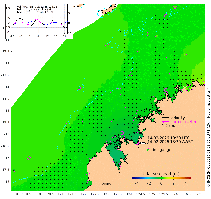 13cm/s 123T +10cm/s rms + 1cm/s 1T. NWSBRW 205m 14cm/s 142T +11cm/s rms + 6cm/s -110T. NWSROW 199m 26cm/s 137T +5cm/s rms + 2cm/s 65T. CAM050 58m 22cm/s 133T +12cm/s rms + 5cm/s 92T. CAM100 99m 5cm/s 122T +7cm/s rms + 1cm/s -85T. KIM400 396m 10cm/s 128T +9cm/s rms + 5cm/s -119T. KIM200 208m 18cm/s 131T +11cm/s rms + 5cm/s -147T. KIM100 99m 19cm/s 119T +8cm/s rms + 3cm/s -103T. KIM050 59m 11cm/s -122T +4cm/s rms + 2cm/s 23T. TIMORS88 91m -2cm Imperieuse Reef 33cm Mermaid Reef 0cm Broome 10cm Cape Baskerville -27cm Red Bluff 8cm Cape Boileau 30cm Scott Reef (WA) 31cm Ashmore Reef -38cm Karrakatta Bay -52cm Sunday Island -66cm Valentine Island -69cm Derby -68cm Port Usborne -52cm Bedford Islands -43cm Yampi Sound (Koolan Island) -40cm Macleay Island -8cm Adele Island 40cm Browse Island -66cm Shale Island -39cm Lizard Island -29cm Hall Point -31cm Degerando Island -4cm White Island 35cm Skua No. 4 Well 49cm Jabiru 16cm Maret Island 27cm Baudin Island 21cm Cape Voltaire (Krait Bay) 28cm Dillon Shoal 54cm Laminaria 9cm Port Warrender 51cm Troughton Island 29cm Cassini Island 39cm West Holothuria Reef Offshore 45cm Jar Island 15cm Lynher Bank 26cm Heywood Shoal 35cm Pee Shoal 46cm Van Cloon Shoal 60cm Carronade Island 64cm Guy Point 66cm Napier Broome Bay 97cm Lesueur Island