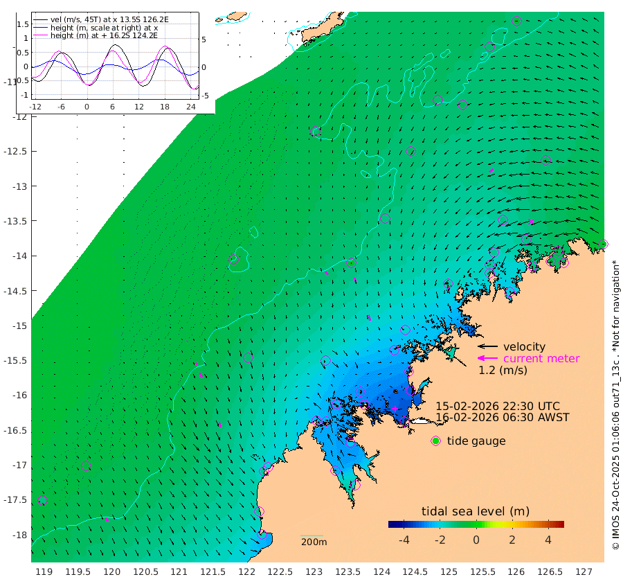 22cm/s 138T +10cm/s rms + 1cm/s 1T. NWSBRW 205m 25cm/s 153T +11cm/s rms + 6cm/s -110T. NWSROW 199m 35cm/s 161T +5cm/s rms + 2cm/s 65T. CAM050 58m 28cm/s 164T +12cm/s rms + 5cm/s 92T. CAM100 99m 6cm/s 161T +7cm/s rms + 1cm/s -85T. KIM400 396m 14cm/s 150T +9cm/s rms + 5cm/s -119T. KIM200 208m 29cm/s 157T +11cm/s rms + 5cm/s -147T. KIM100 99m 32cm/s 161T +8cm/s rms + 3cm/s -103T. KIM050 59m 28cm/s -130T +4cm/s rms + 2cm/s 23T. TIMORS88 91m -121cm Imperieuse Reef -73cm Mermaid Reef -174cm Broome -138cm Cape Baskerville -206cm Red Bluff -145cm Cape Boileau -70cm Scott Reef (WA) -105cm Ashmore Reef -237cm Karrakatta Bay -240cm Sunday Island -250cm Valentine Island -195cm Derby -220cm Port Usborne -239cm Bedford Islands -268cm Yampi Sound (Koolan Island) -272cm Macleay Island -184cm Adele Island -37cm Browse Island -326cm Shale Island -320cm Lizard Island -277cm Hall Point -225cm Degerando Island -194cm White Island -102cm Skua No. 4 Well -99cm Jabiru -162cm Maret Island -146cm Baudin Island -152cm Cape Voltaire (Krait Bay) -106cm Dillon Shoal -60cm Laminaria -195cm Port Warrender -133cm Troughton Island -149cm Cassini Island -122cm West Holothuria Reef Offshore -122cm Jar Island -117cm Lynher Bank -133cm Heywood Shoal -113cm Pee Shoal -102cm Van Cloon Shoal -88cm Carronade Island -89cm Guy Point -98cm Napier Broome Bay -44cm Lesueur Island